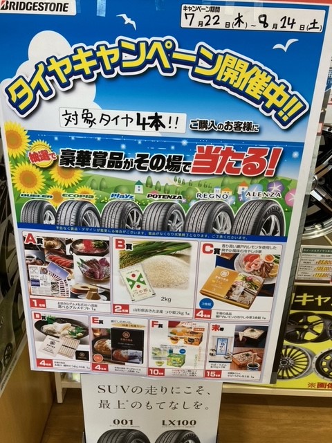 当店指定のタイヤ4本セットご購入の方にもれなく抽選で豪華商品をご用意させていただいております!