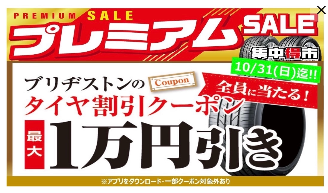 まだ間に合います! ポスト 2021年10月17日 タイヤ館和泉のホームページをご覧いただきありがとうございます。 和泉市和気町府道30号線沿い、西松屋さん横のタイヤ館です。 10月31日までプレミアムSALE開催日です! タイヤ館アプリダウンロードでタイヤ割引き クーポン最大1万円OFFが当たります!! まだ間に合いますので是非ご来店下さい! タイヤ館和泉 郵便番号:594-0073 大阪府和泉市和気町1-6-23 tel:0725457117 営業時間:9:30〜18:30 定休日:毎週水曜日、第一、第三木曜日 担当:古川