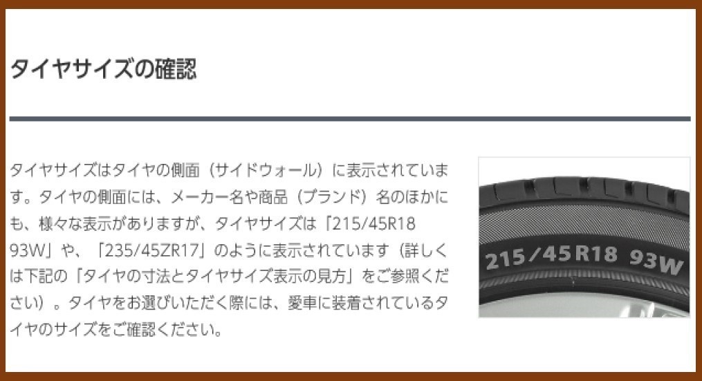画像のように例えば、215/45R18 93W などと記載されておりますので、