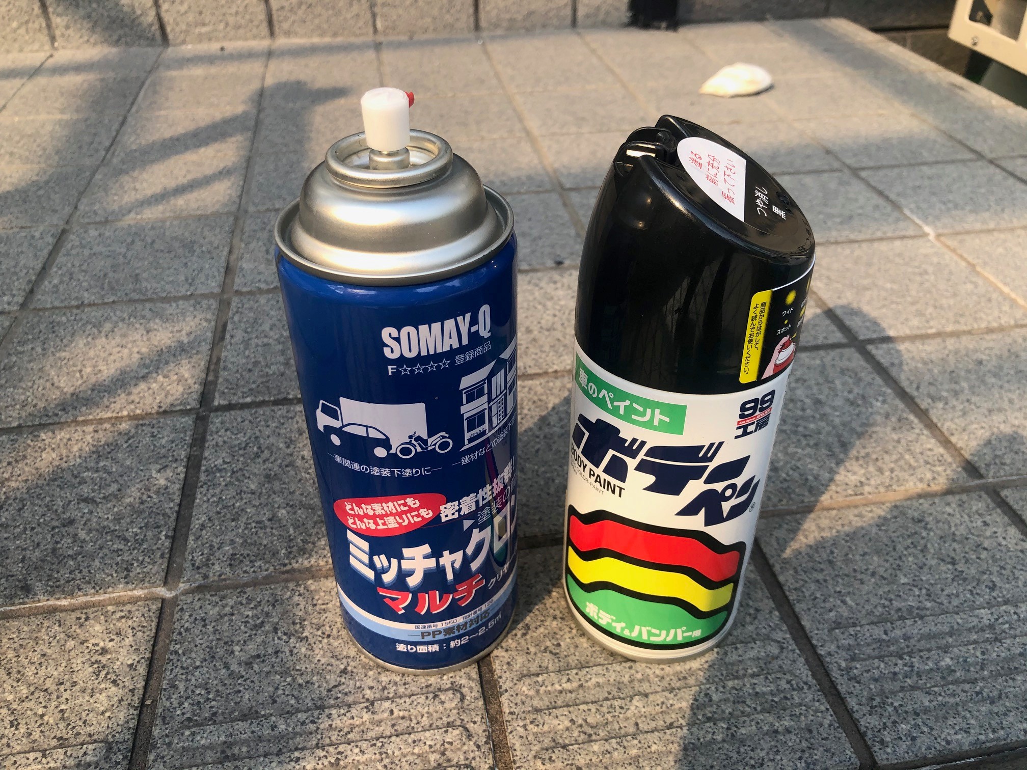 用意するものは、シリコンオフorパーツクリーナーと、ミッチャクロン、カラースプレーを準備します。