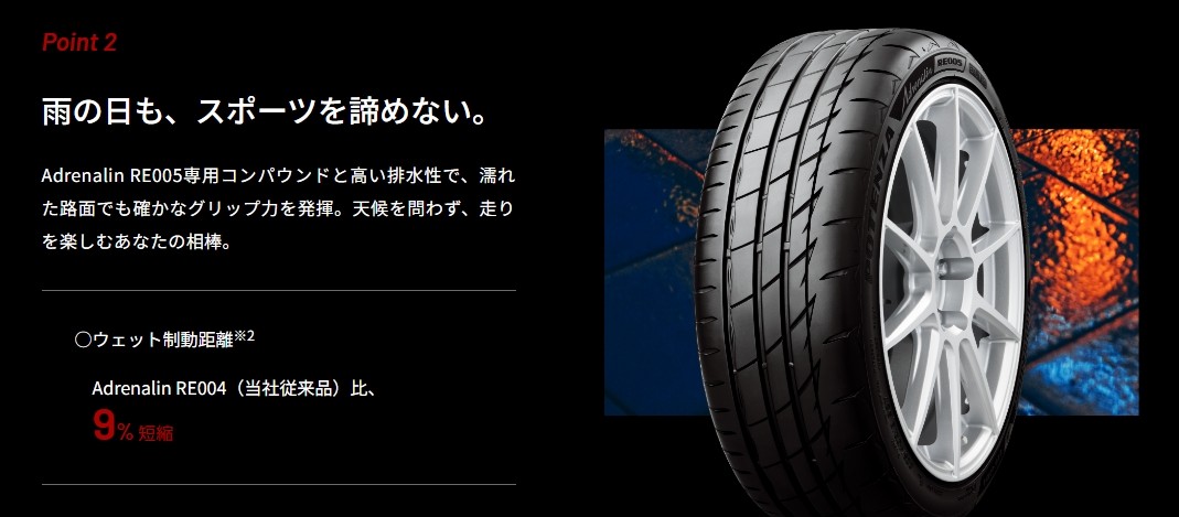2.ハイレベルなウェット性能(ウェット制動距離9%短縮)※2