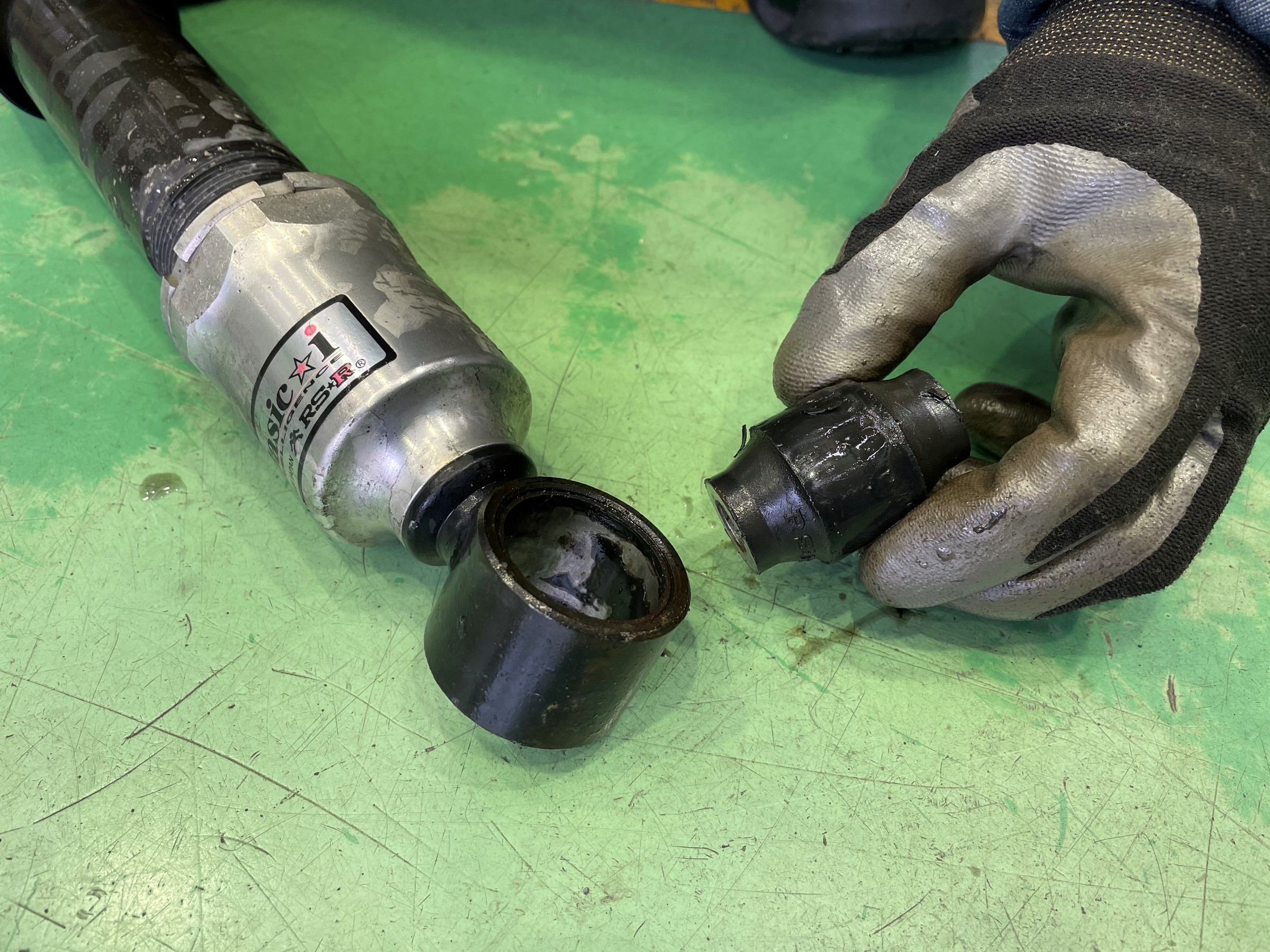 なんとリアショックのブッシュの抜けを発見!!
