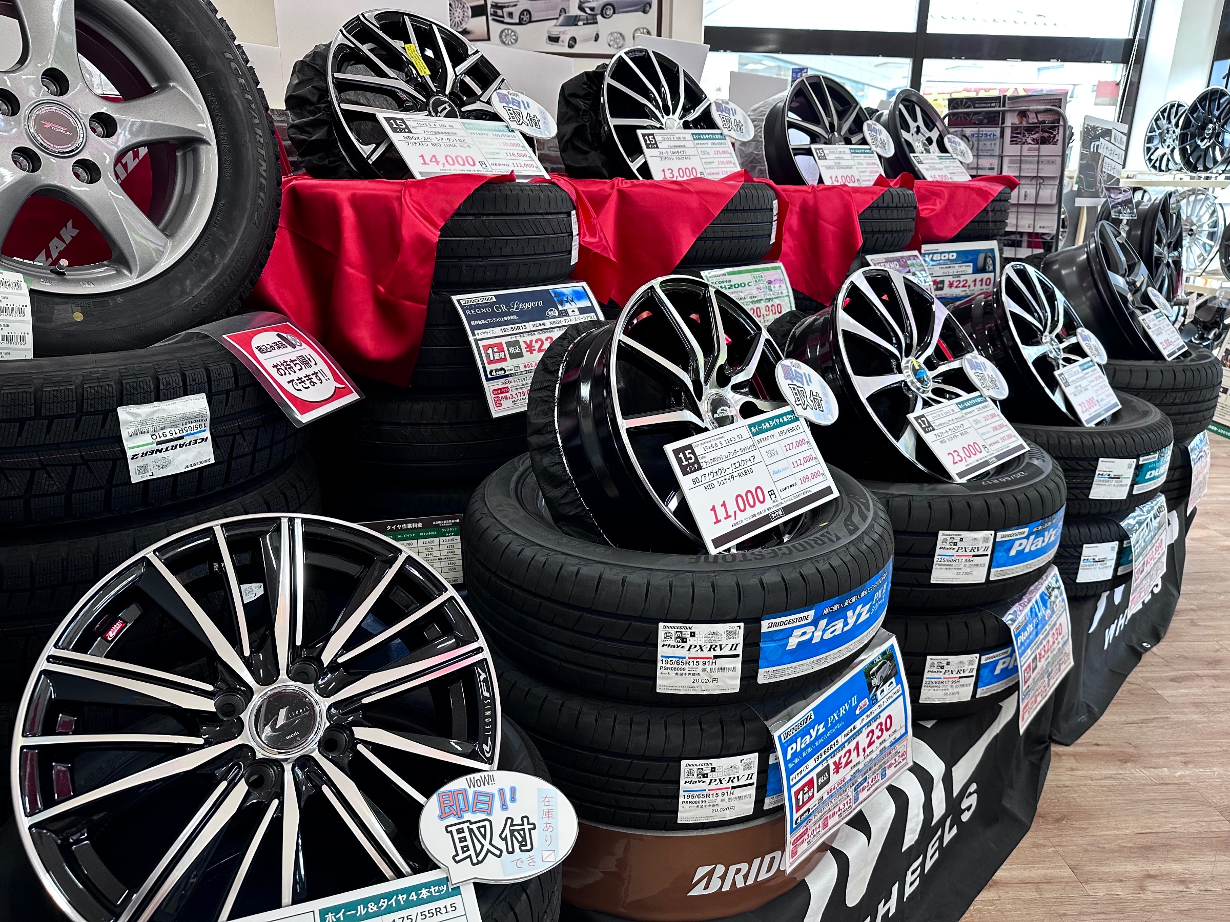 タイヤ館大津ではアルミホイールも含めて豊富に在庫しております。