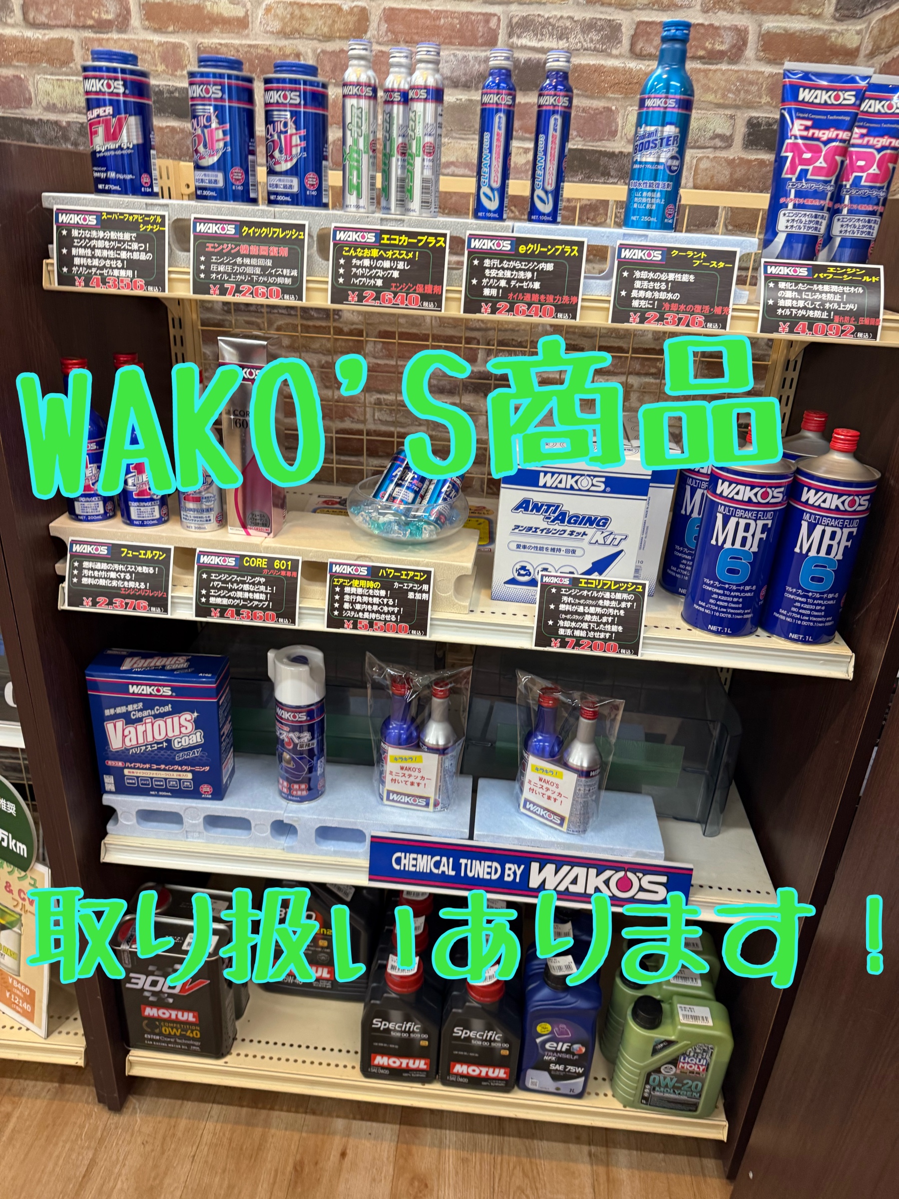 WAKO'S (ワコーズ) 商品、輸入車用オイル等置いてあります!