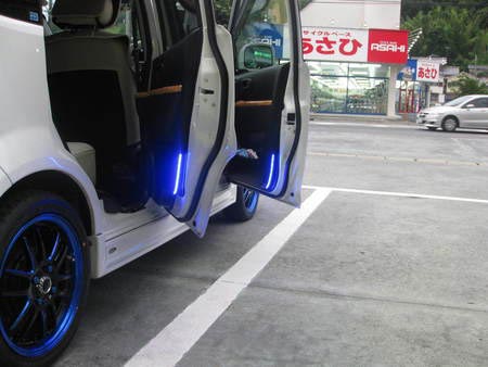 今回のカスタムメニューは、ドアの側面にLEDテープです。