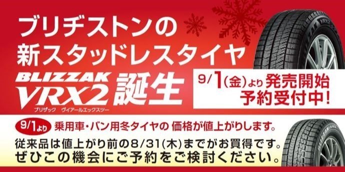 「ブリザック VRX2」が9/1に新発売いたします!!!!!