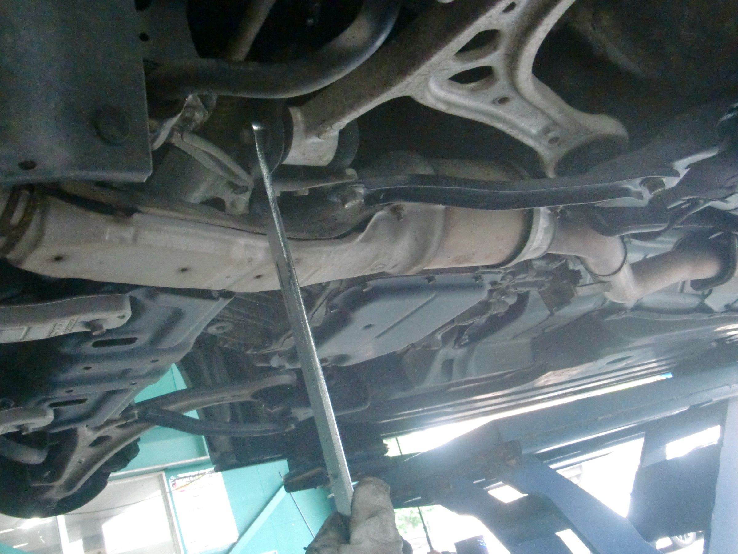フロントのロアアームなど、ローダウンで捩じれるブッシュをしっかりと1G荷重で締め直しました!