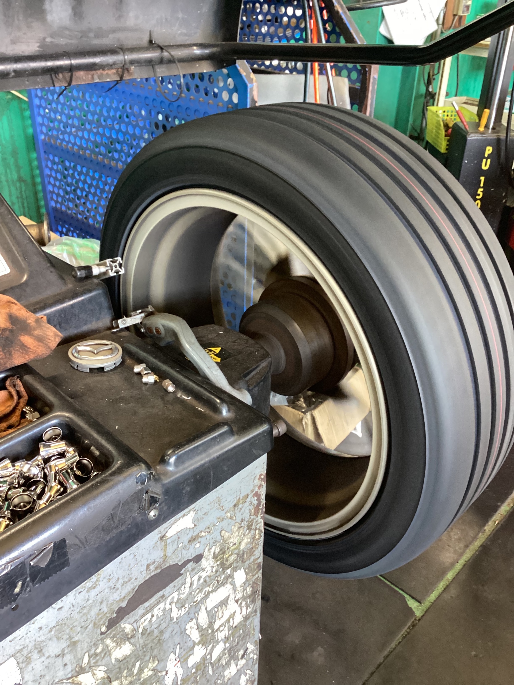 タイヤにも重い部分と軽い部分があるため、それぞれが同じような重さになるようにしていきます。