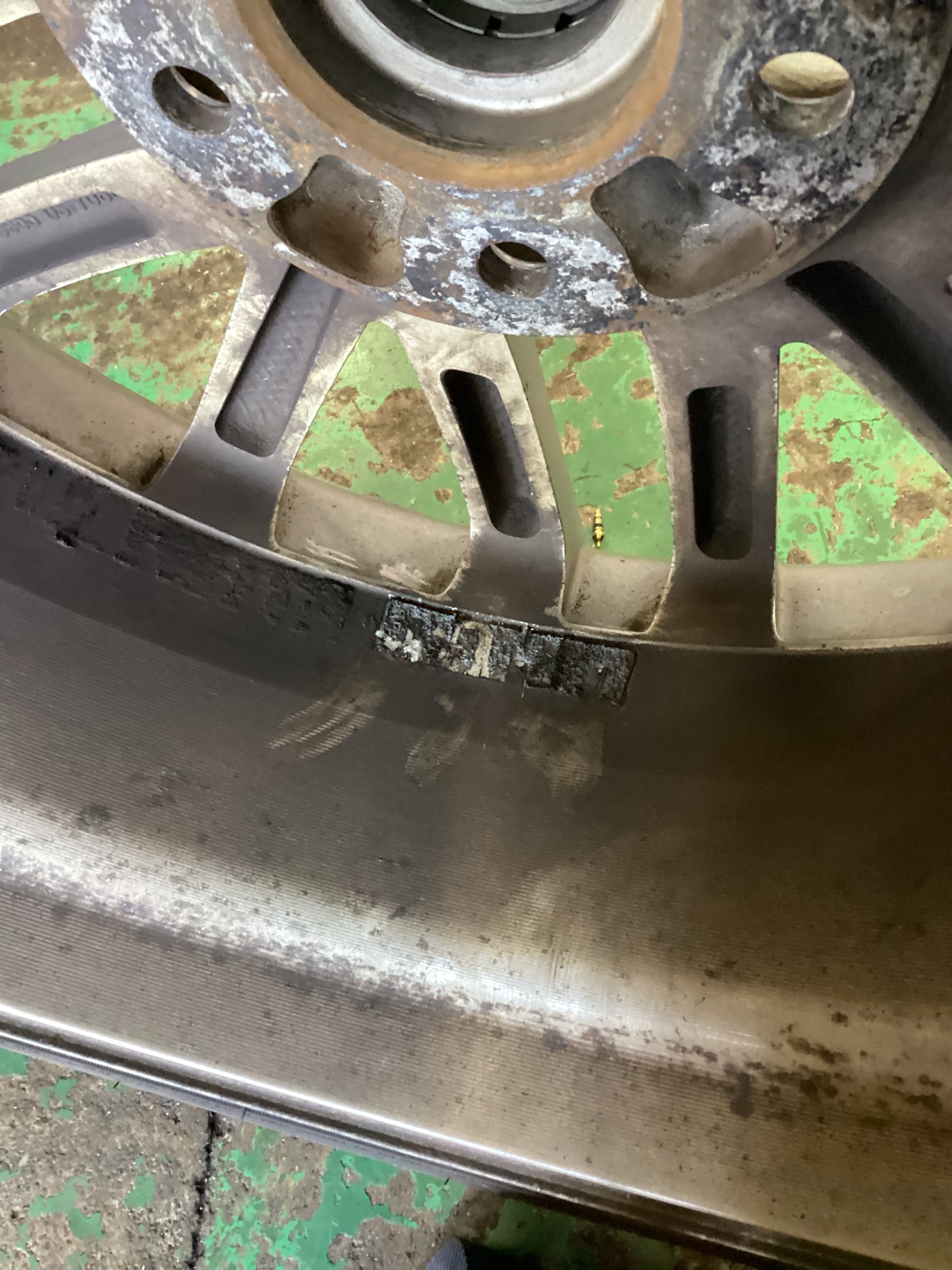 タイヤを取り外すと、以前調整したバランスウェイトがホイールに付いているので取り除きます。