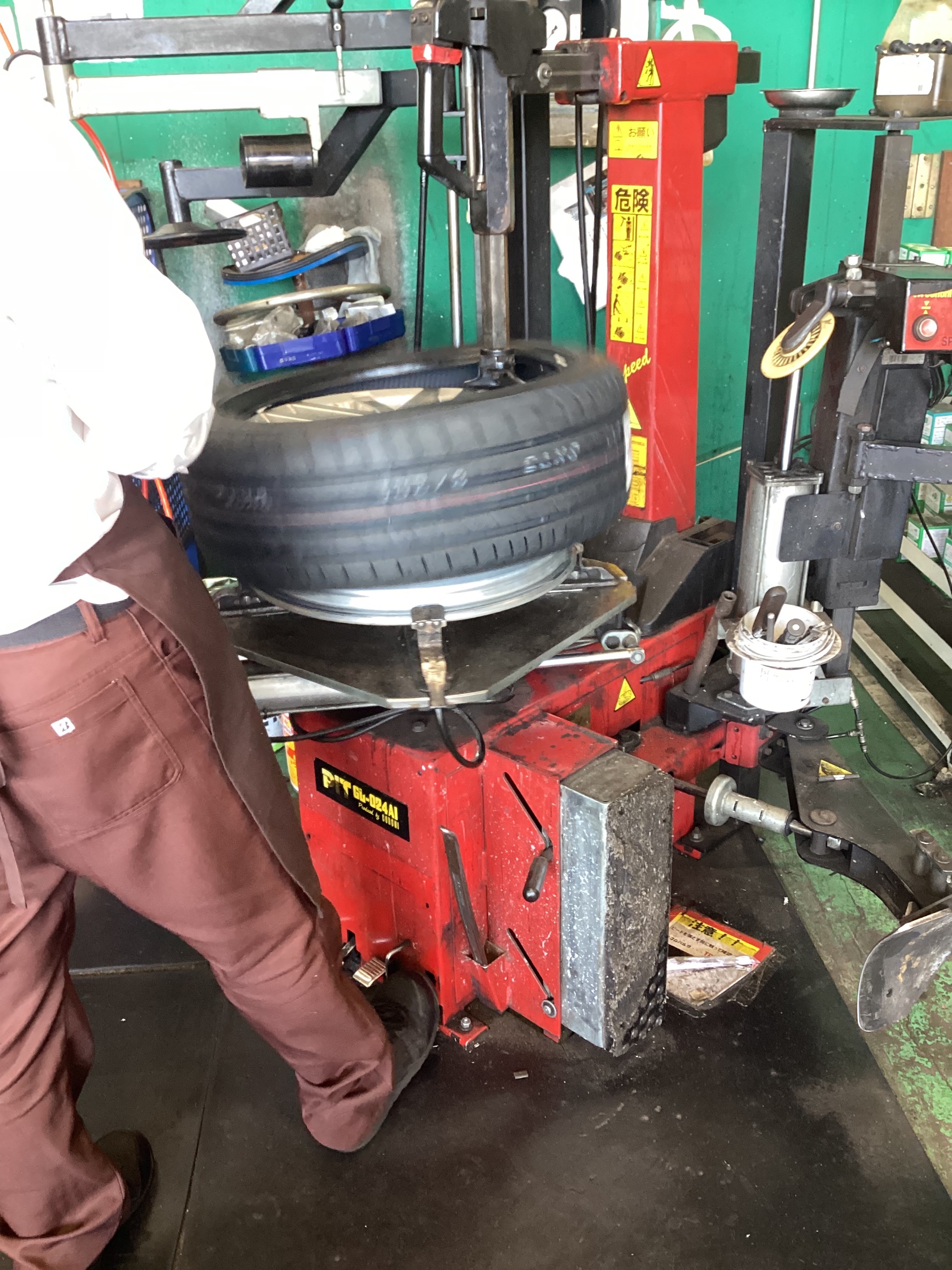 古いタイヤを外したら新しいタイヤを組み替えていきます^ ^