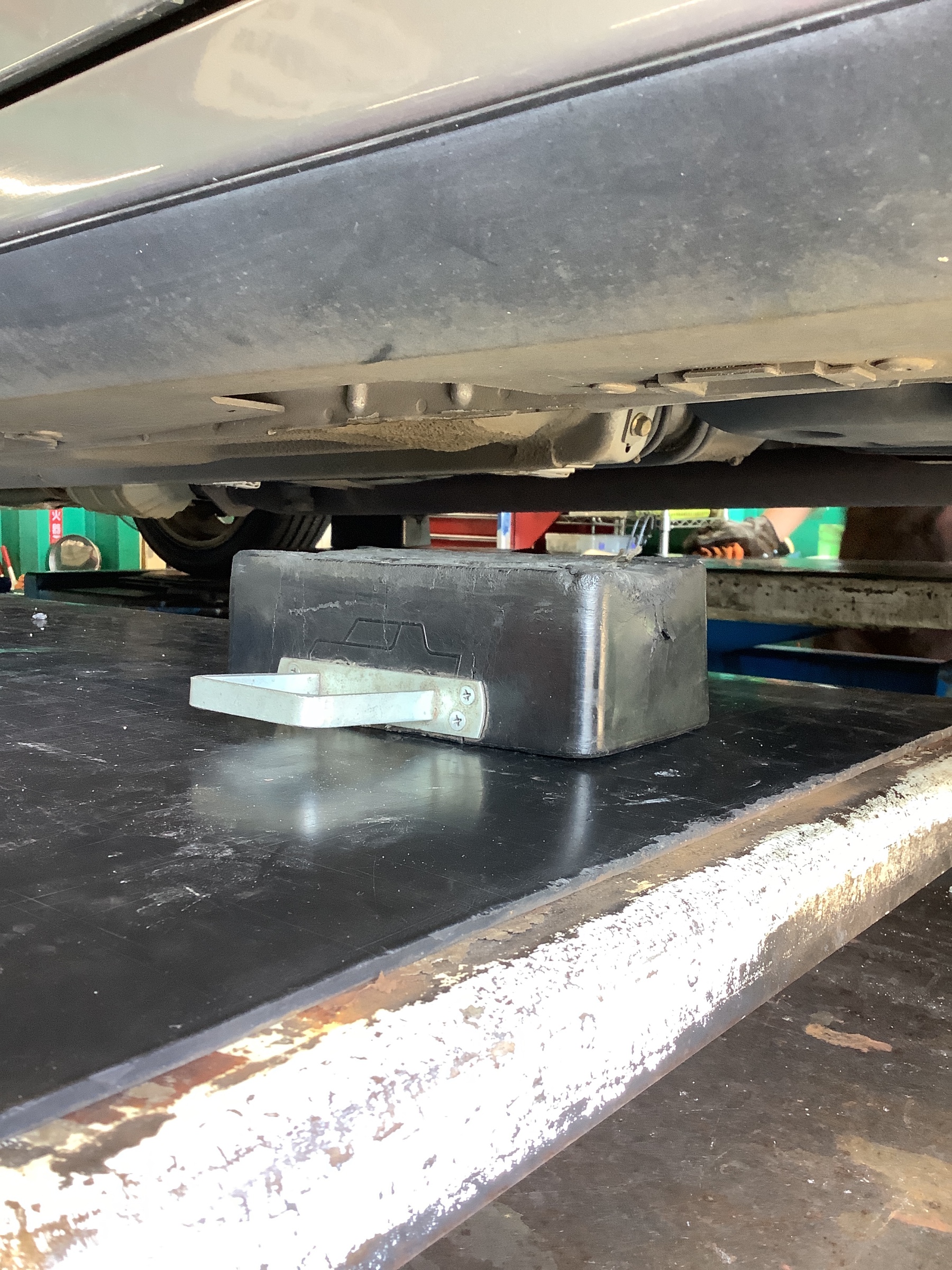 上げる際に、車の適切な位置にゴムパットを挟みます。