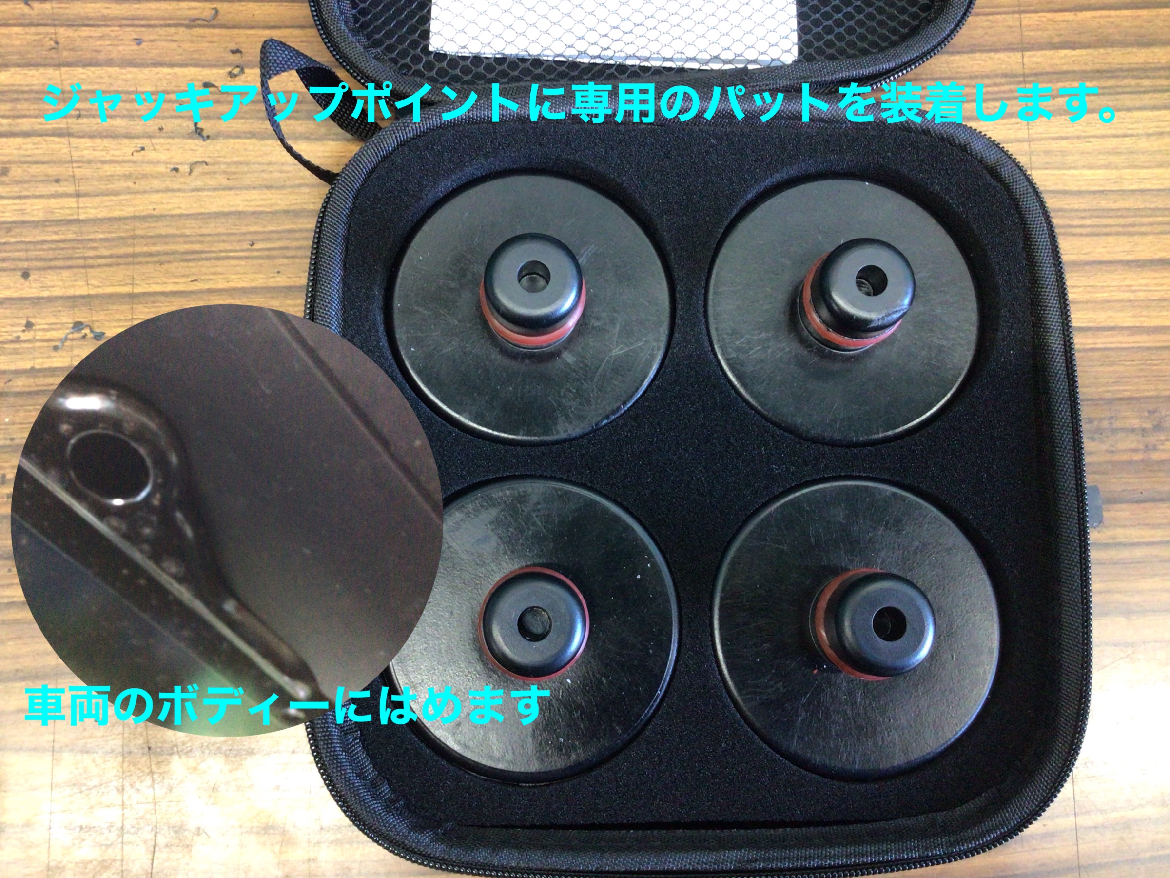 専用のパットがないとジャッキアップ出来ません、車両バッテリーケーブルなど破損に繋がります。