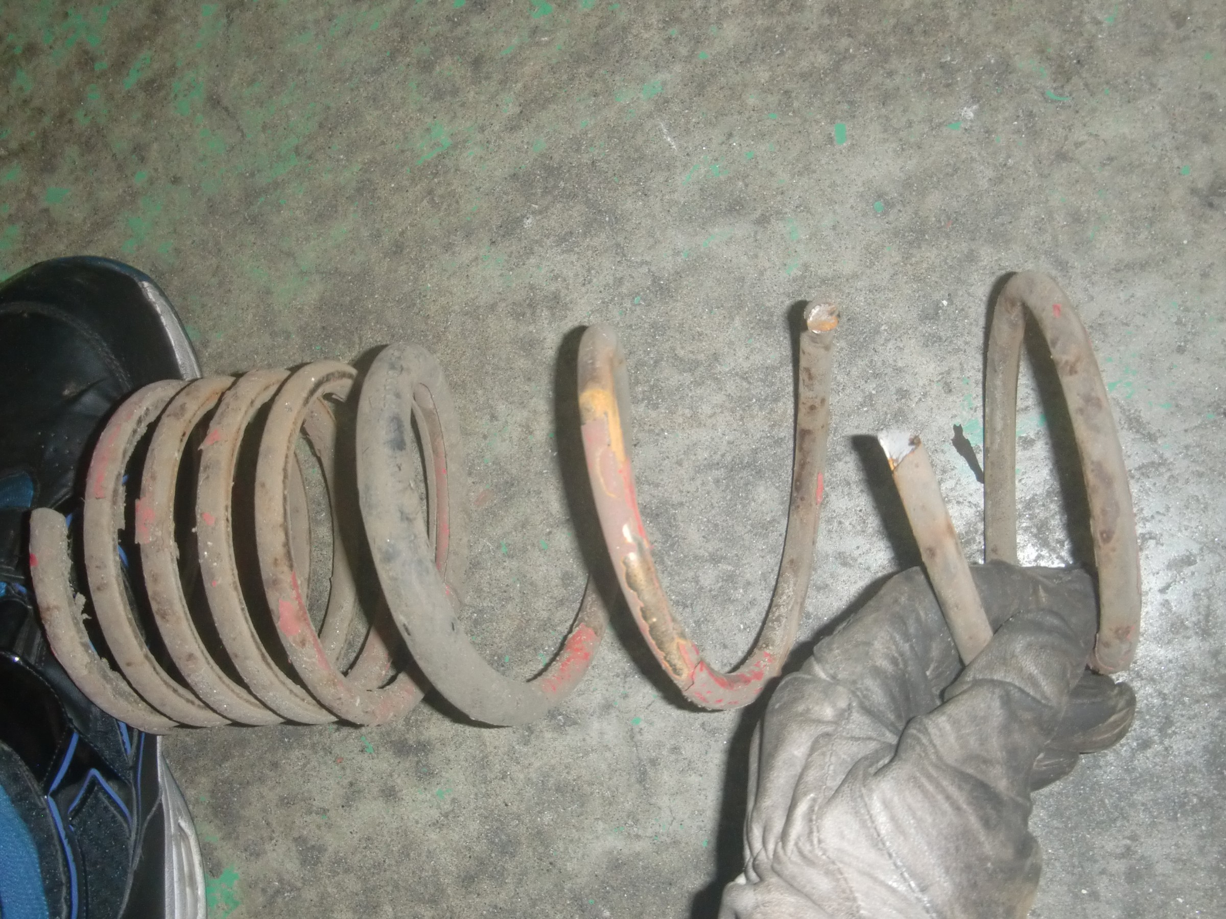 リアの左右のコイルスプリングが折れて真っ二つに・・・!!(;゚Д゚)こんな症状は初めて見ました・・・。