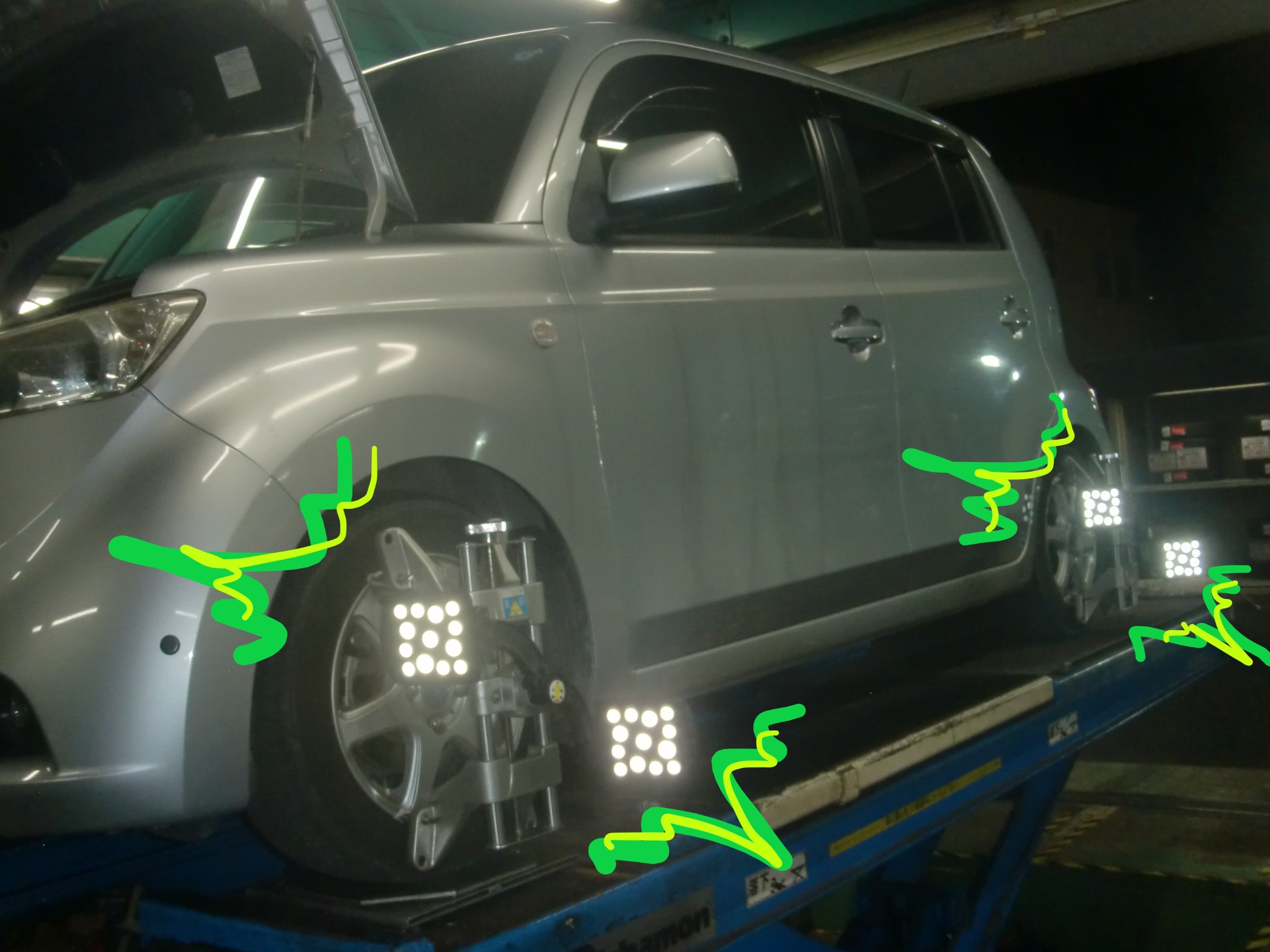 QNC20型bB、折れたサスペンションスプリングの交換&アライメント調整!