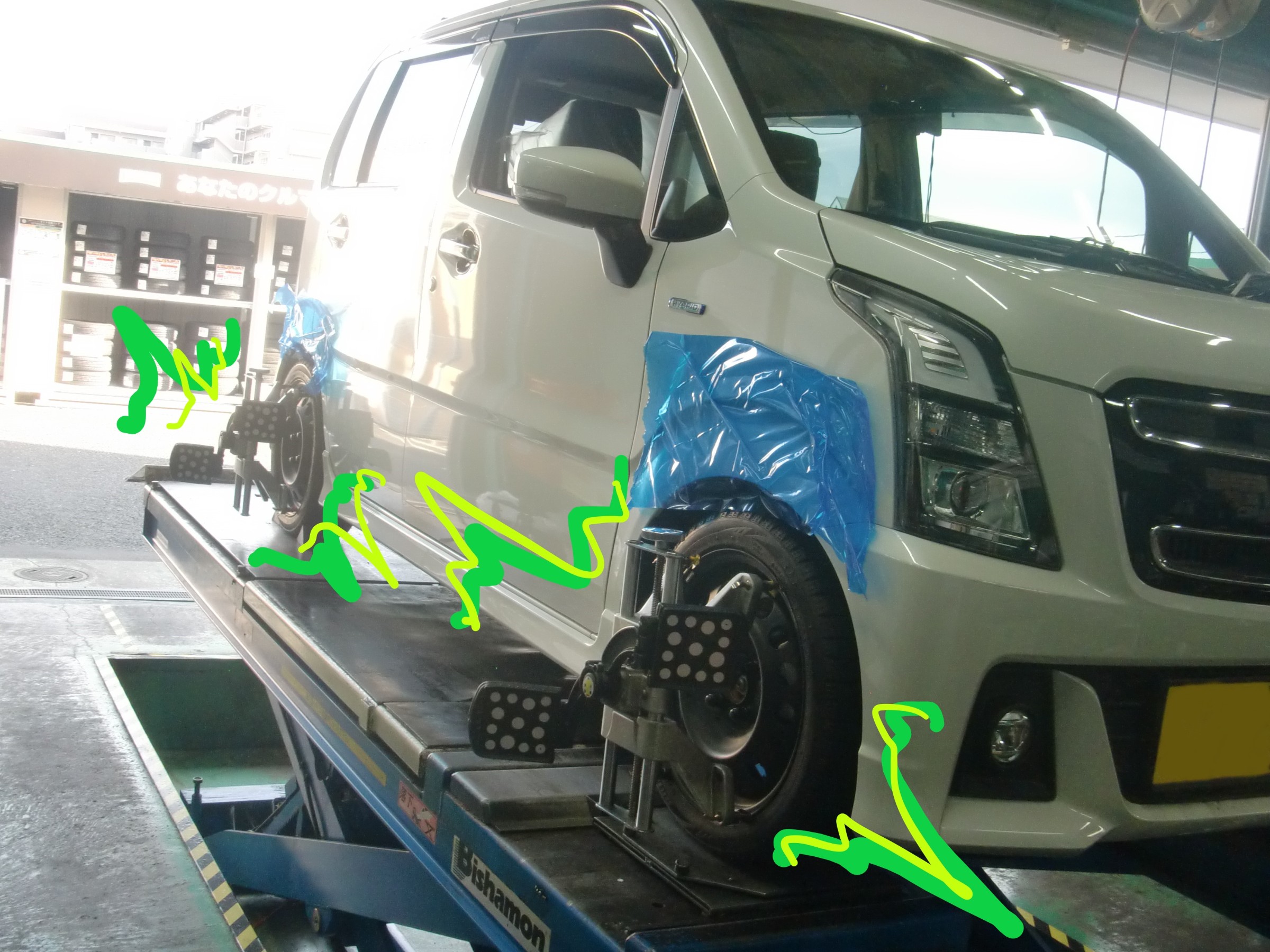 MH55S型ワゴンRスティングレー、車高調サスペンションのお取り付け&アライメント調整!