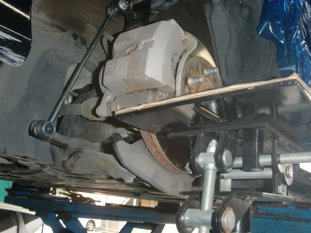 疑似的に“タイヤを装着して接地させた状態”を作り出し、その状態で捻じれてしまっているブッシュのテンションを解放してから締めなおすことで足回りのニュートラル位置を現状のローダウン状態に合わせてあげる作業ですヾ(゚д゚)ノ゛