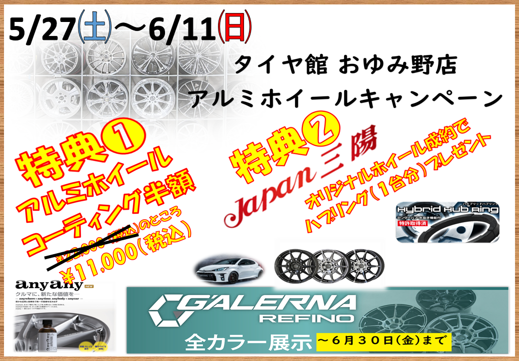 【本日開催!!】タイヤ館おゆみ野限定アルミホイールイベント!!