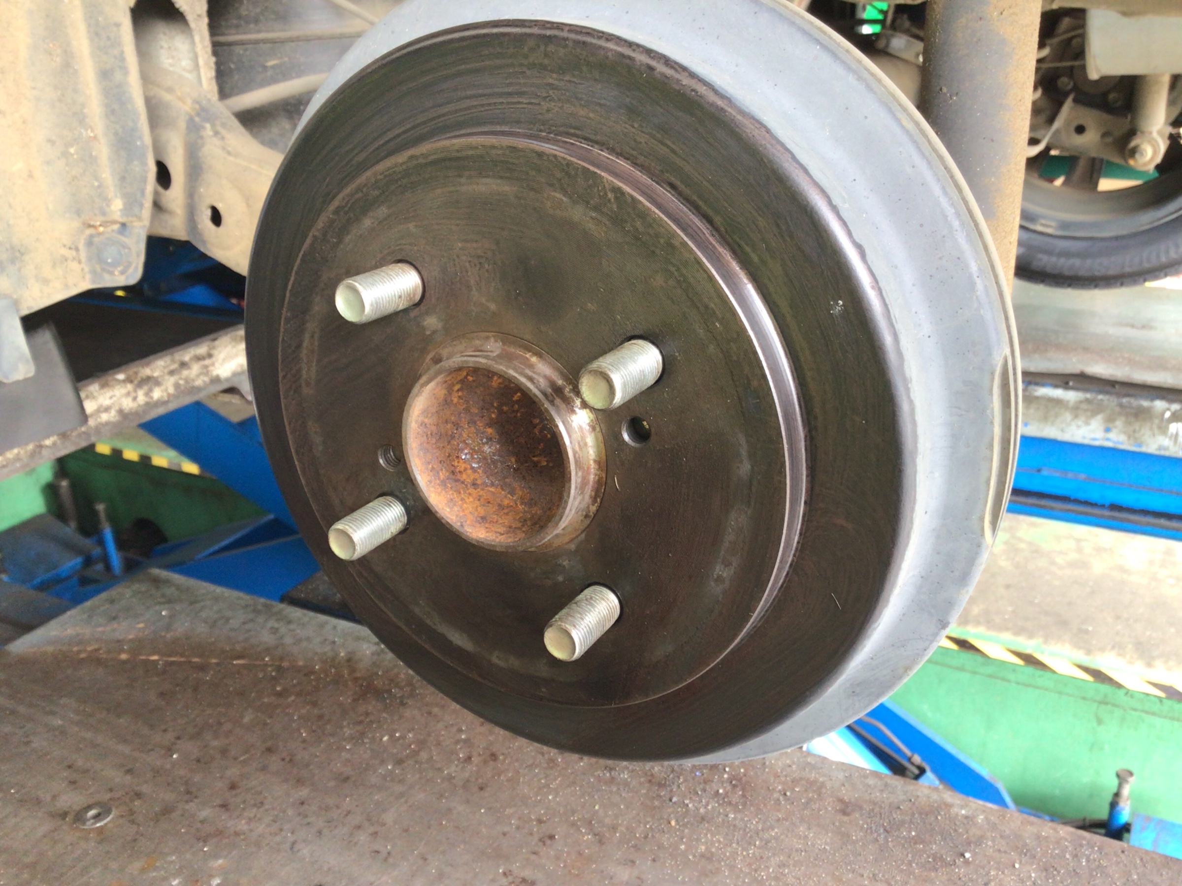 タイヤの取付面(ハブ部分)の錆をきれいに落としてお取りつけです。