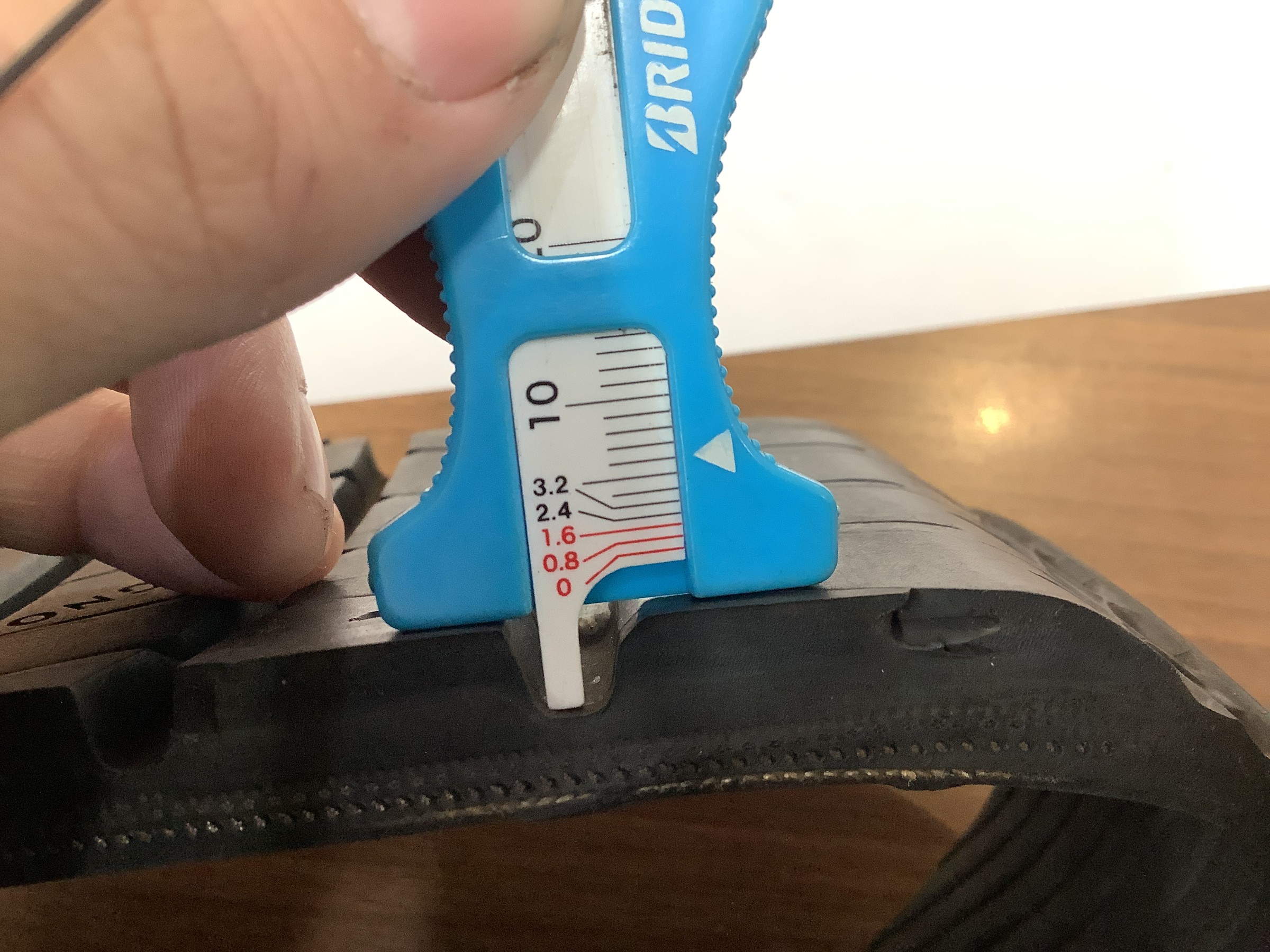 なので『タイヤの溝が少ないので、溝がたっぷりある新品タイヤに交換しましょう!』というお話になるんですねヽ(゚∀゚)メ(゚∀゚)ノ