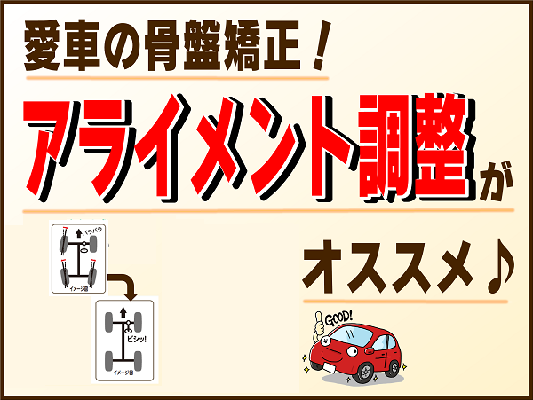 アライメントは意外と身近なことでズレてしまいます!ほかにも足回りの交換などで車高に変化があった際もアライメントの数値は変わってしまいます。