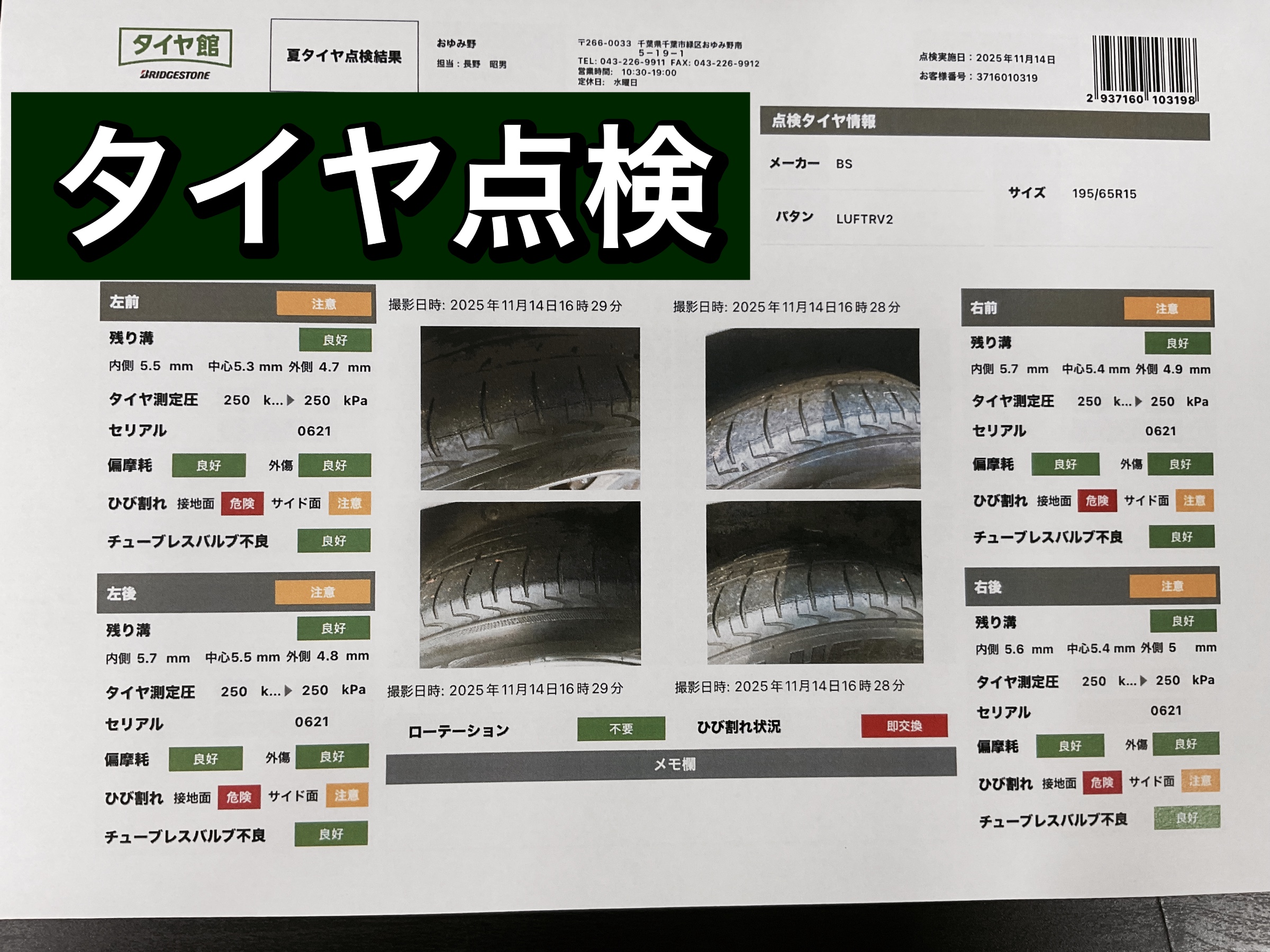 タイヤ点検しっかりやています!