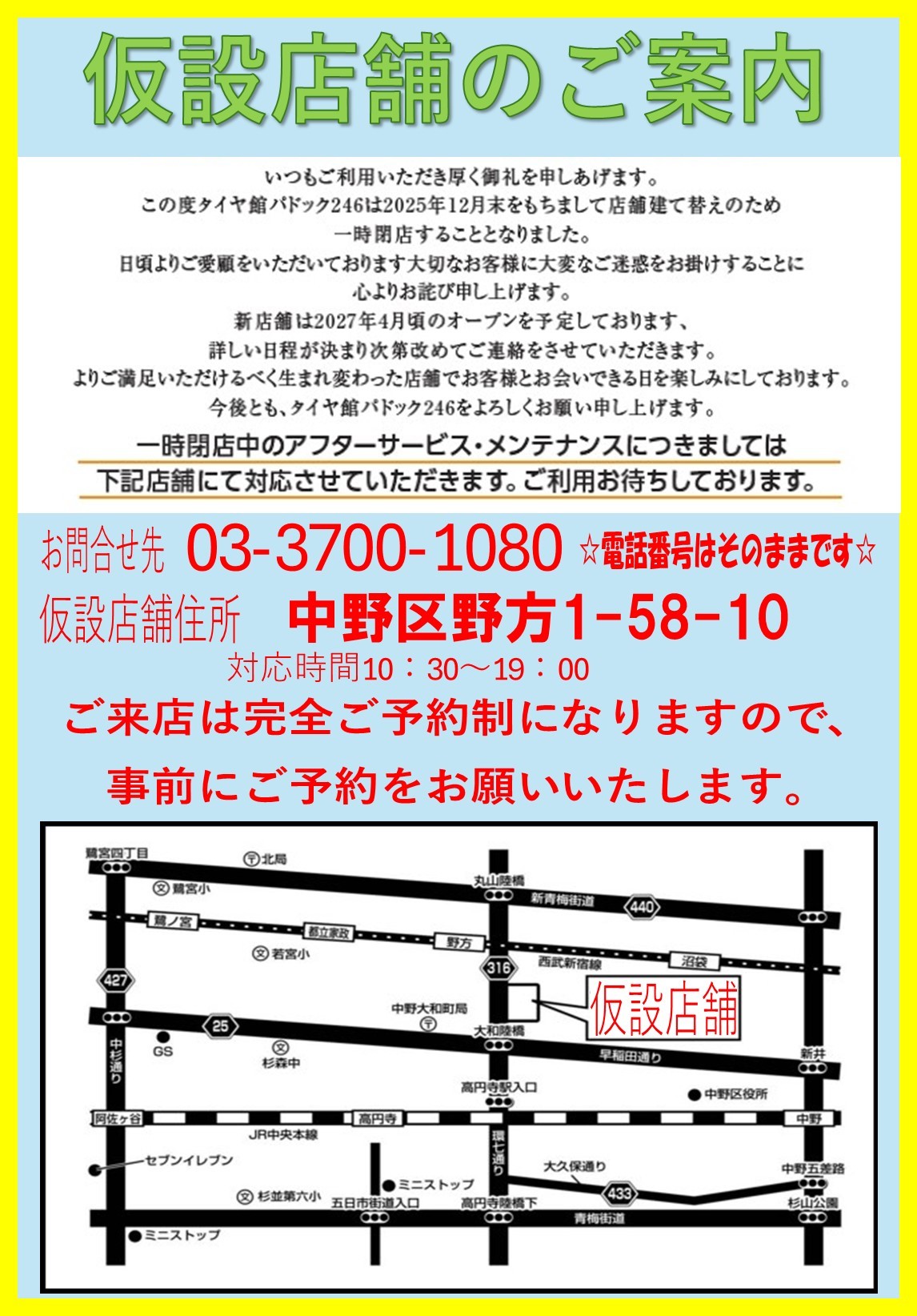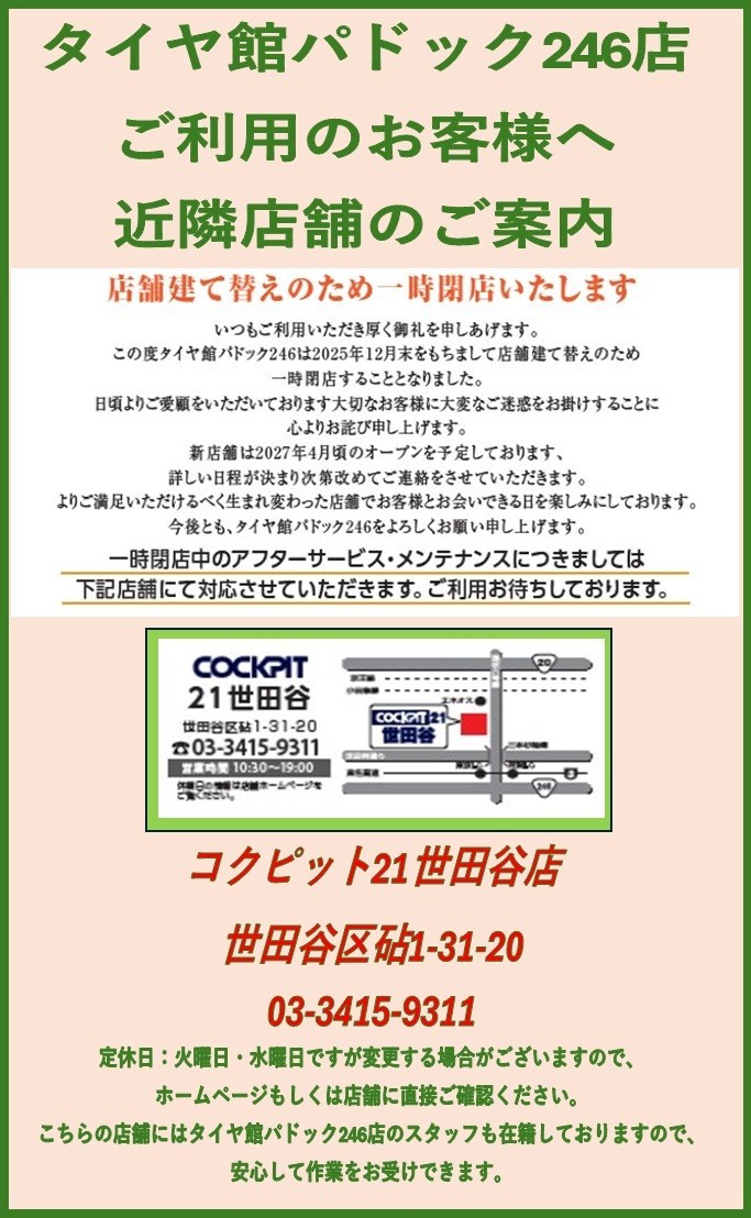 ☆タイヤ館パドック246店ご利用のお客様へ近隣店舗ご案内☆