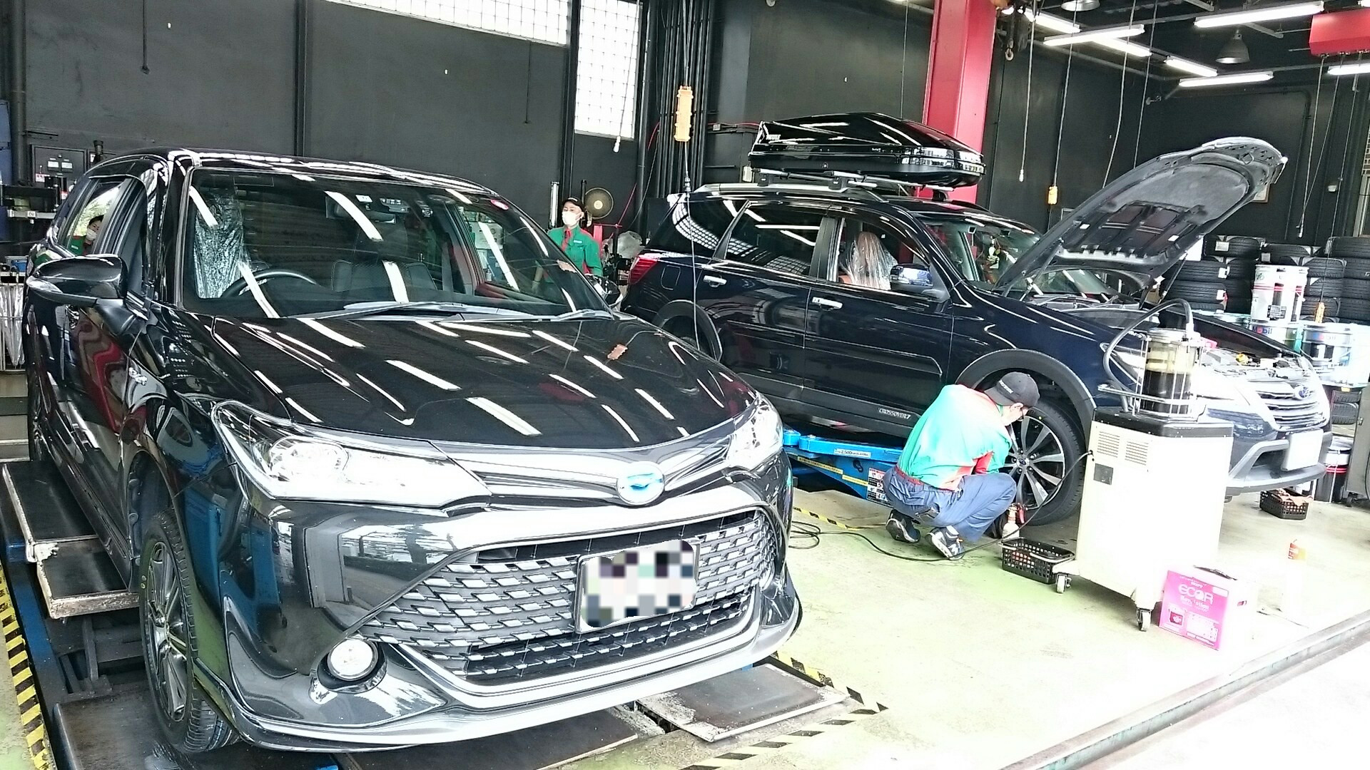 スバル エクシーガ タイヤ オイル バッテリー交換。