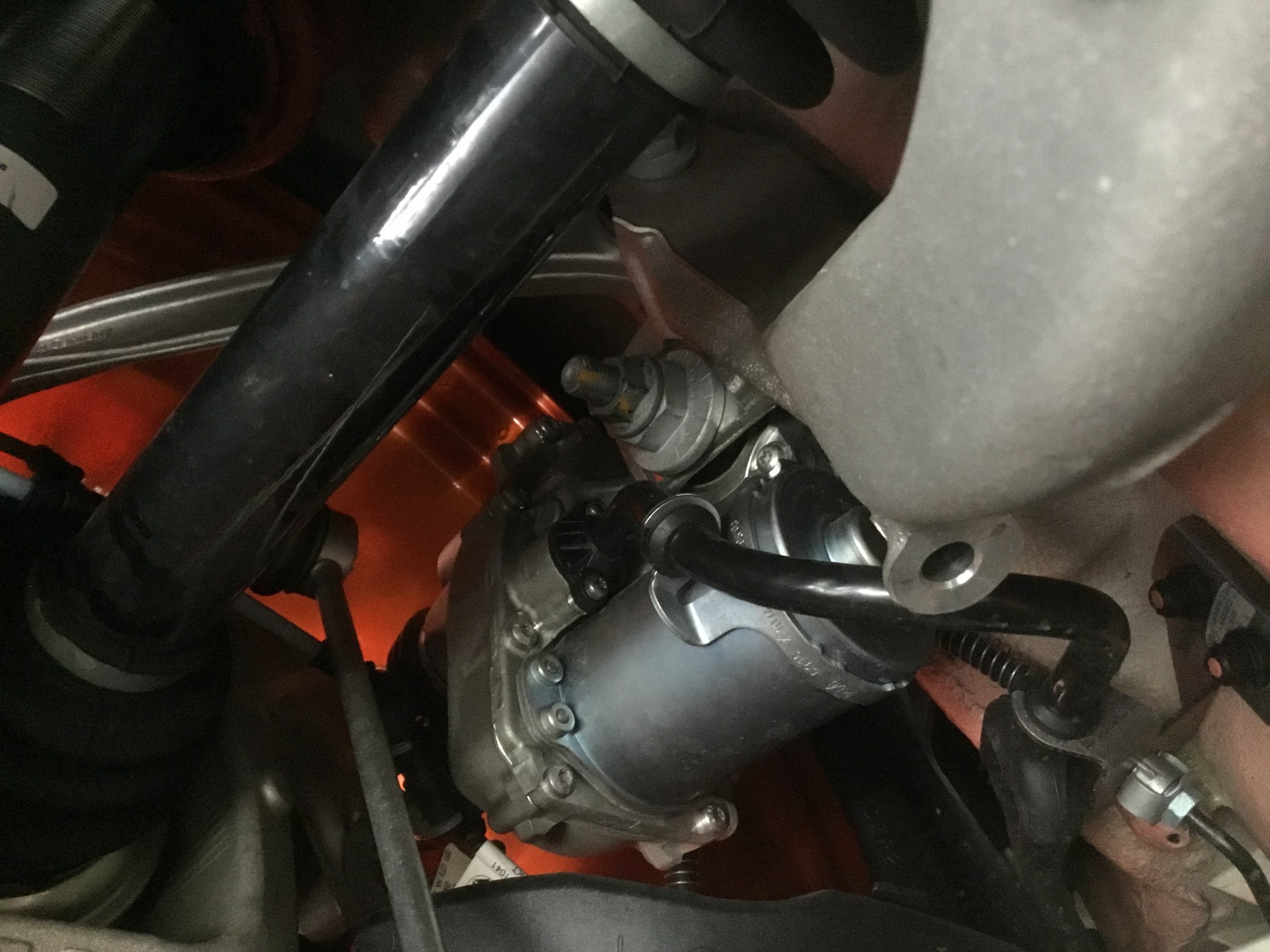 4WS(リアアクスルステアリング)用のモーターの上についているカムで調整します。