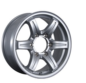 主に6穴用のアルミホイ-ル(ハイエース・キャラバン・ジムニ-・ランクル等)です。カラーはシルバ-とブラックの2色の設定となります!!