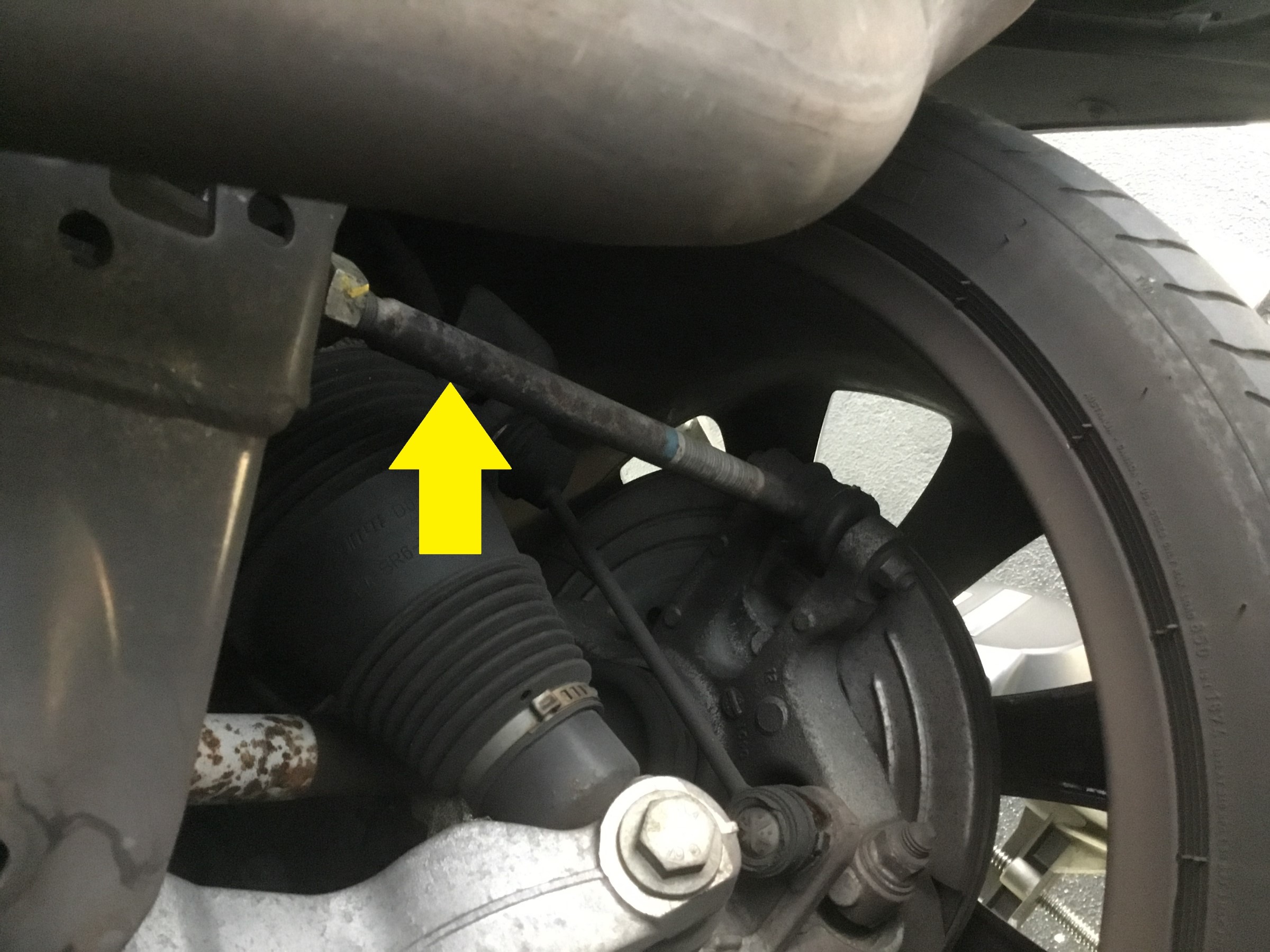 写真の黄色矢印のようにタイロッドになっていますので、調整はラクチンです。