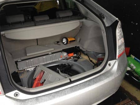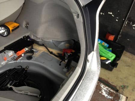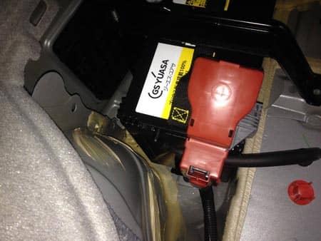 30プリウスは後部リアゲート右側に補機バッテリーが搭載されています。