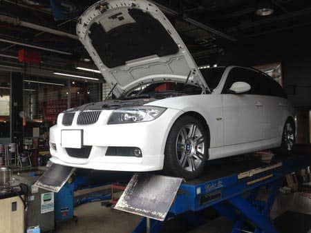 今日は、輸入車のオイル交換が連続しましたので、オイル交換風景をパチリ。(゚ー゚)y