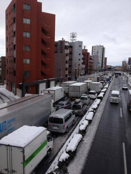 スタッドレスを履いてらっしゃるクルマでも渋滞に見舞われて、