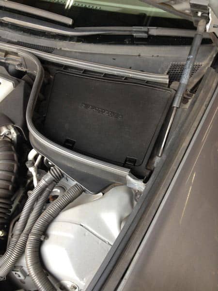 実はバッテリーがボンネット内部のカバーの下にいらっしゃいまして。