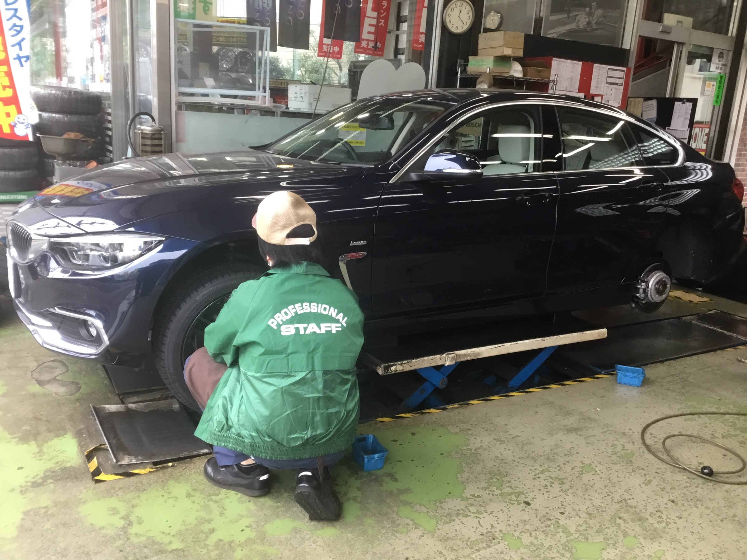 本日はBMW 4シリーズ F36にスタッドレスセットを取り付けました。