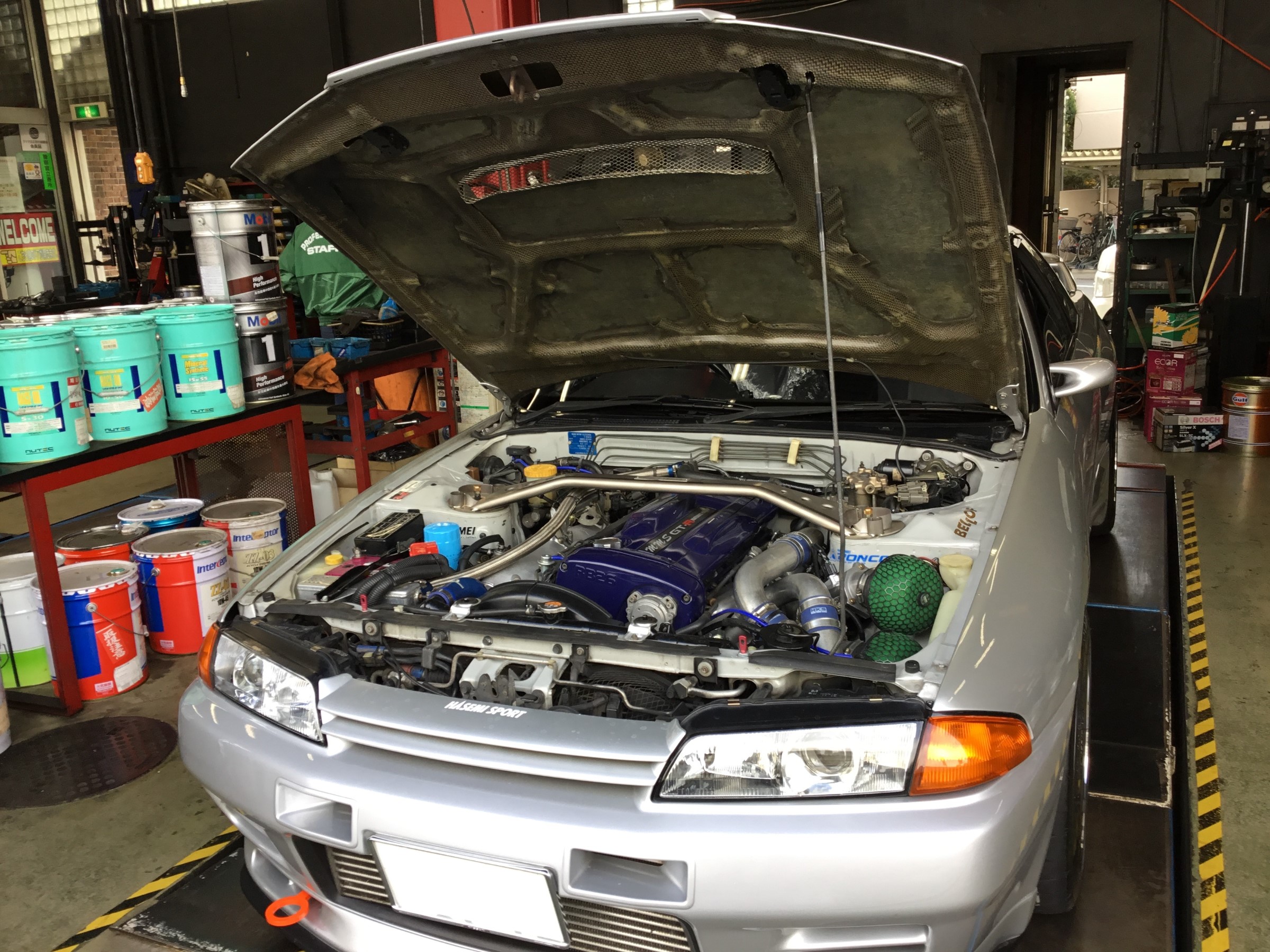 サーキット走行をされたR32 GT-Rのメンテナンス作業です。