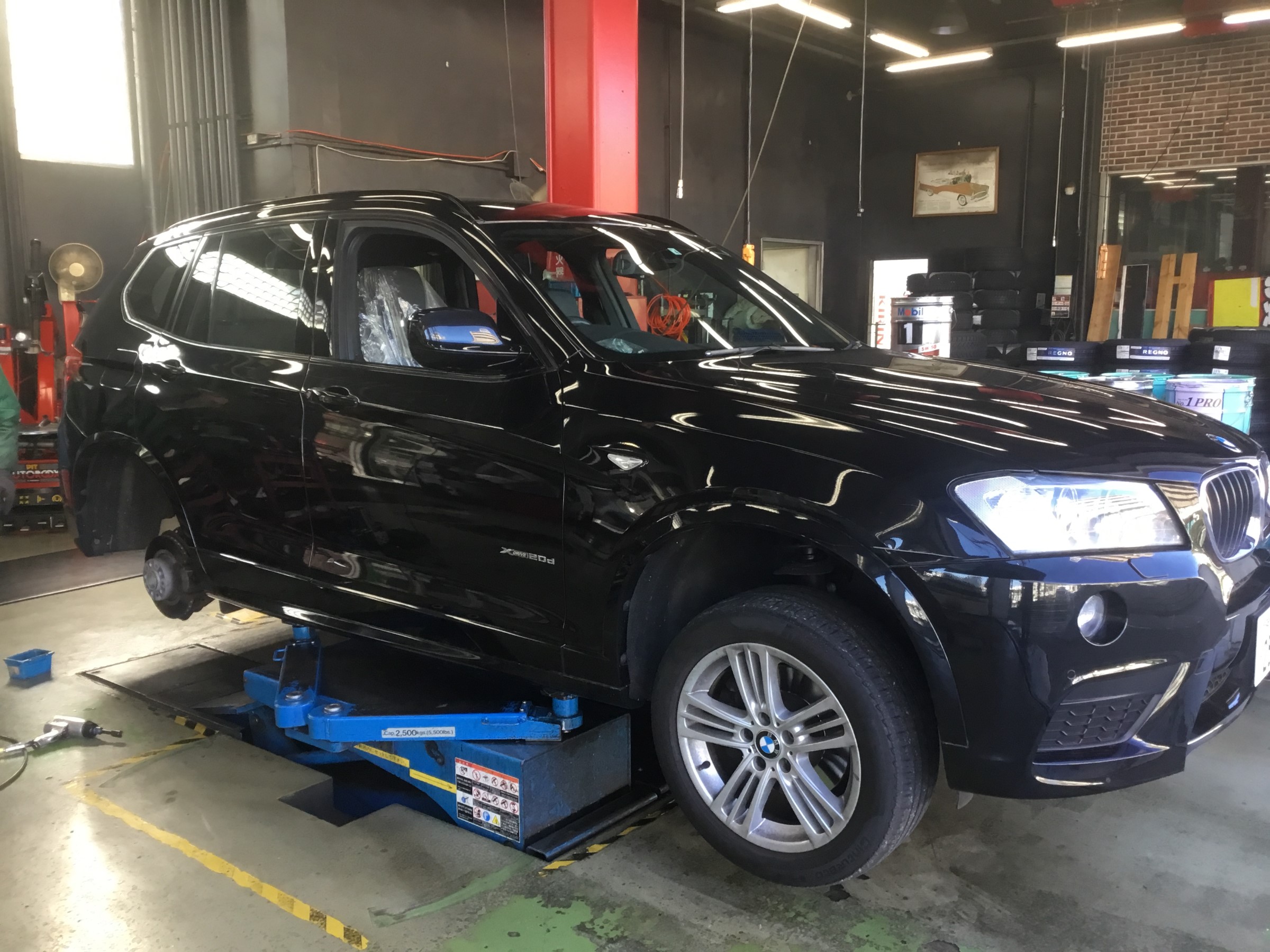 タイヤ交換で入庫のX3。