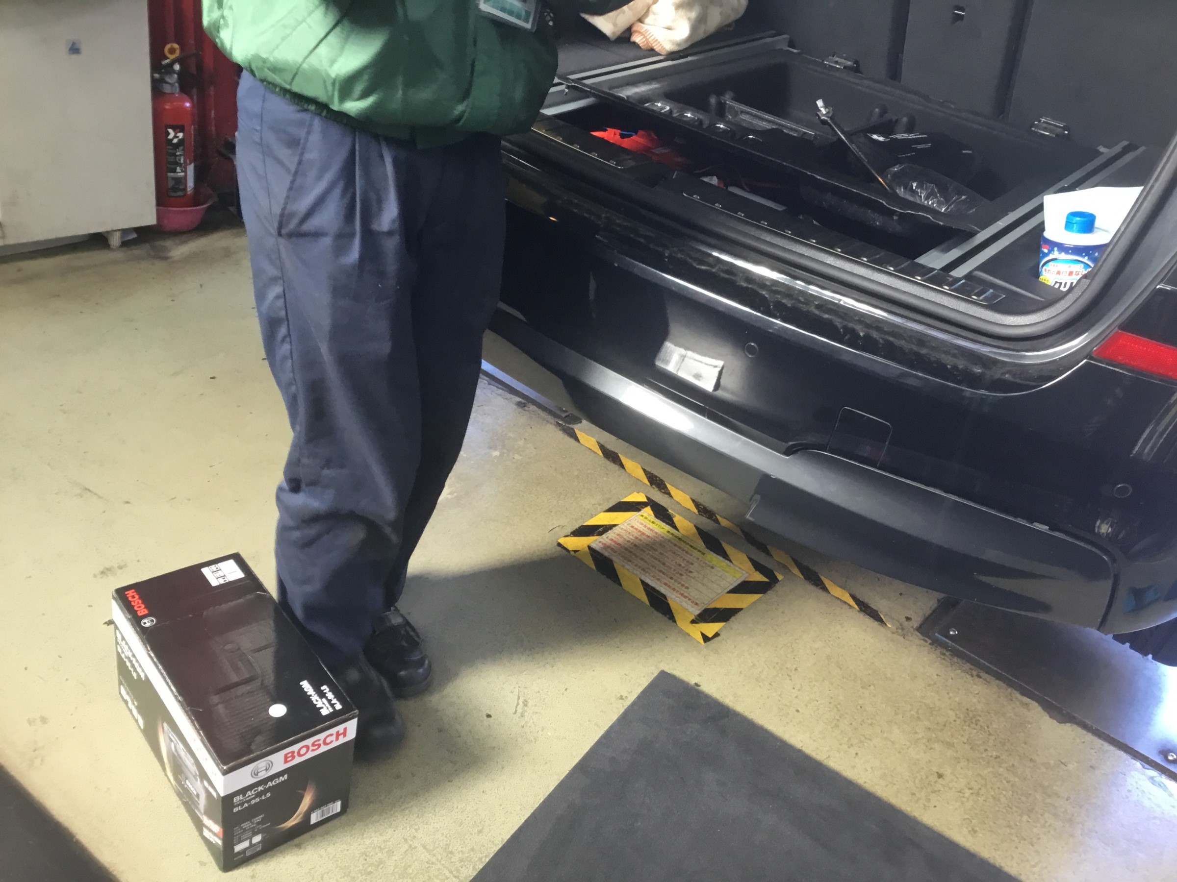 作業と平行して安全点検を行い、バッテリーがだいぶお疲れのようでしたのでこちらも交換です。
