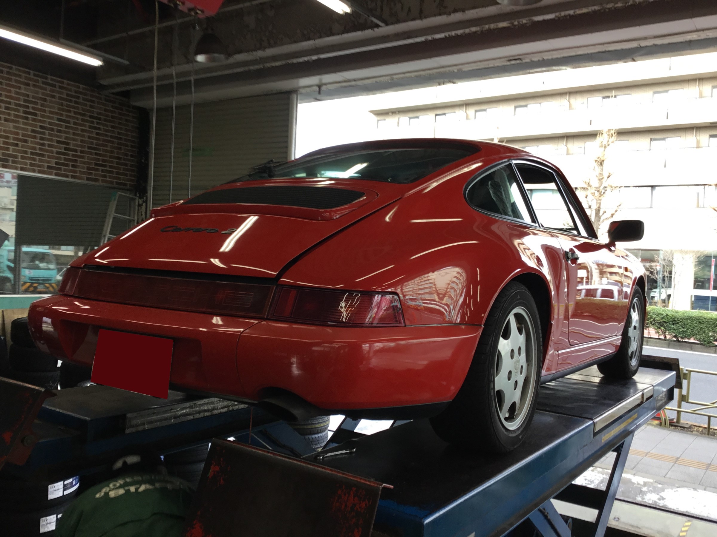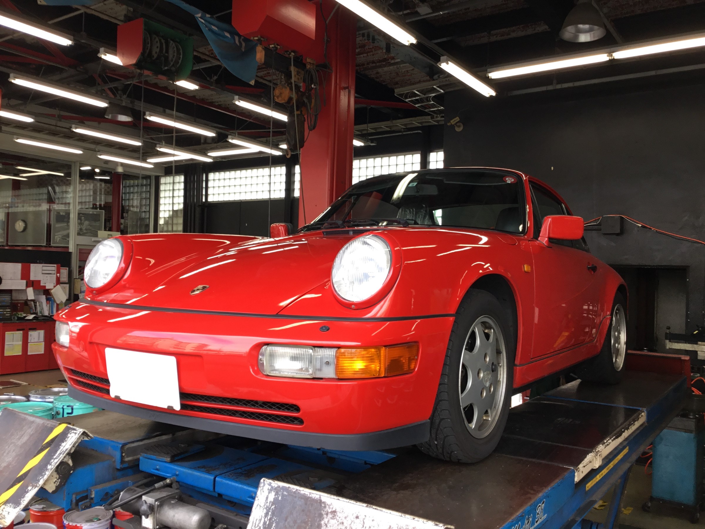 本日はPorsche911の964 Carrera2がオイル交換で来店です。