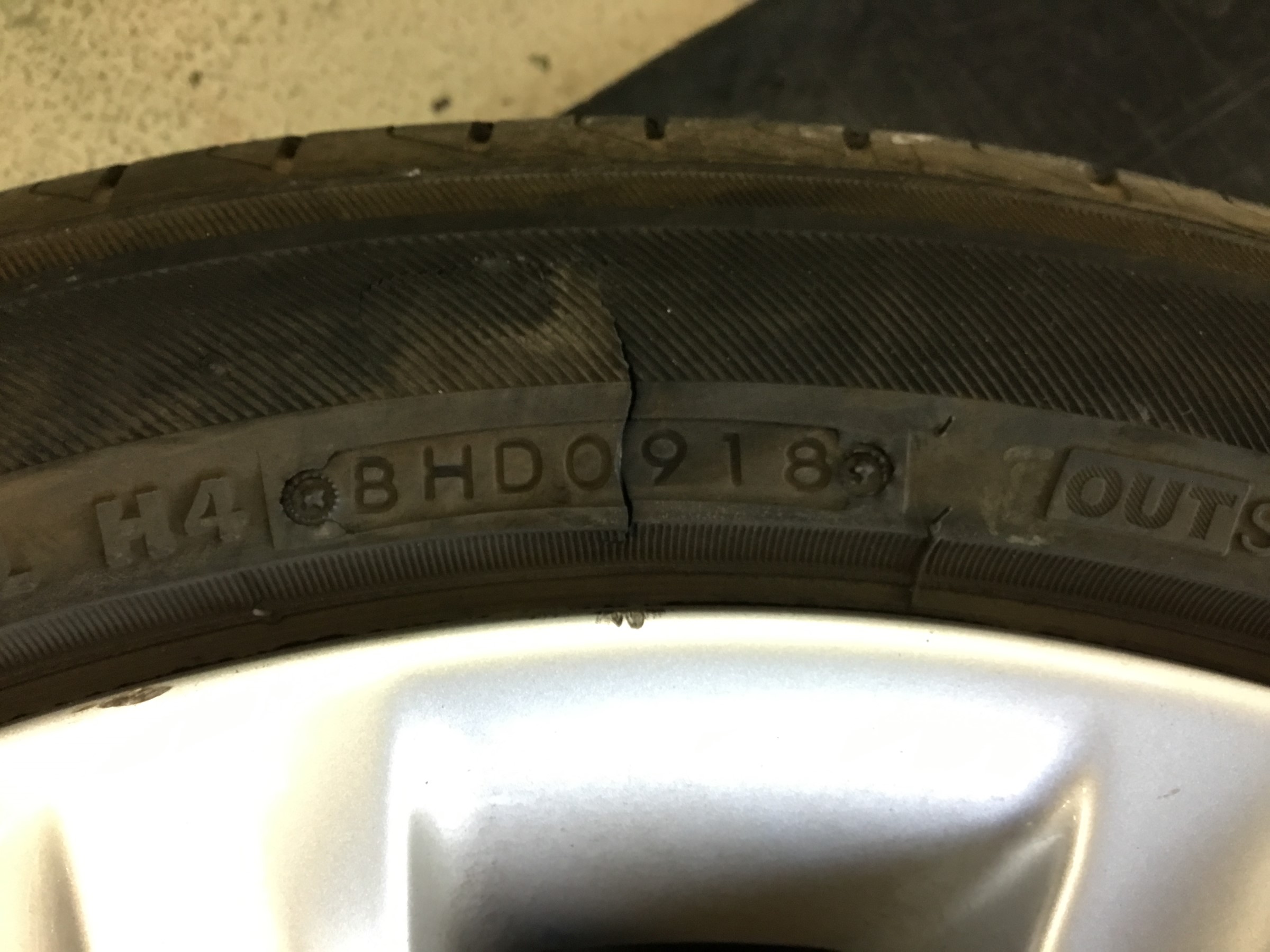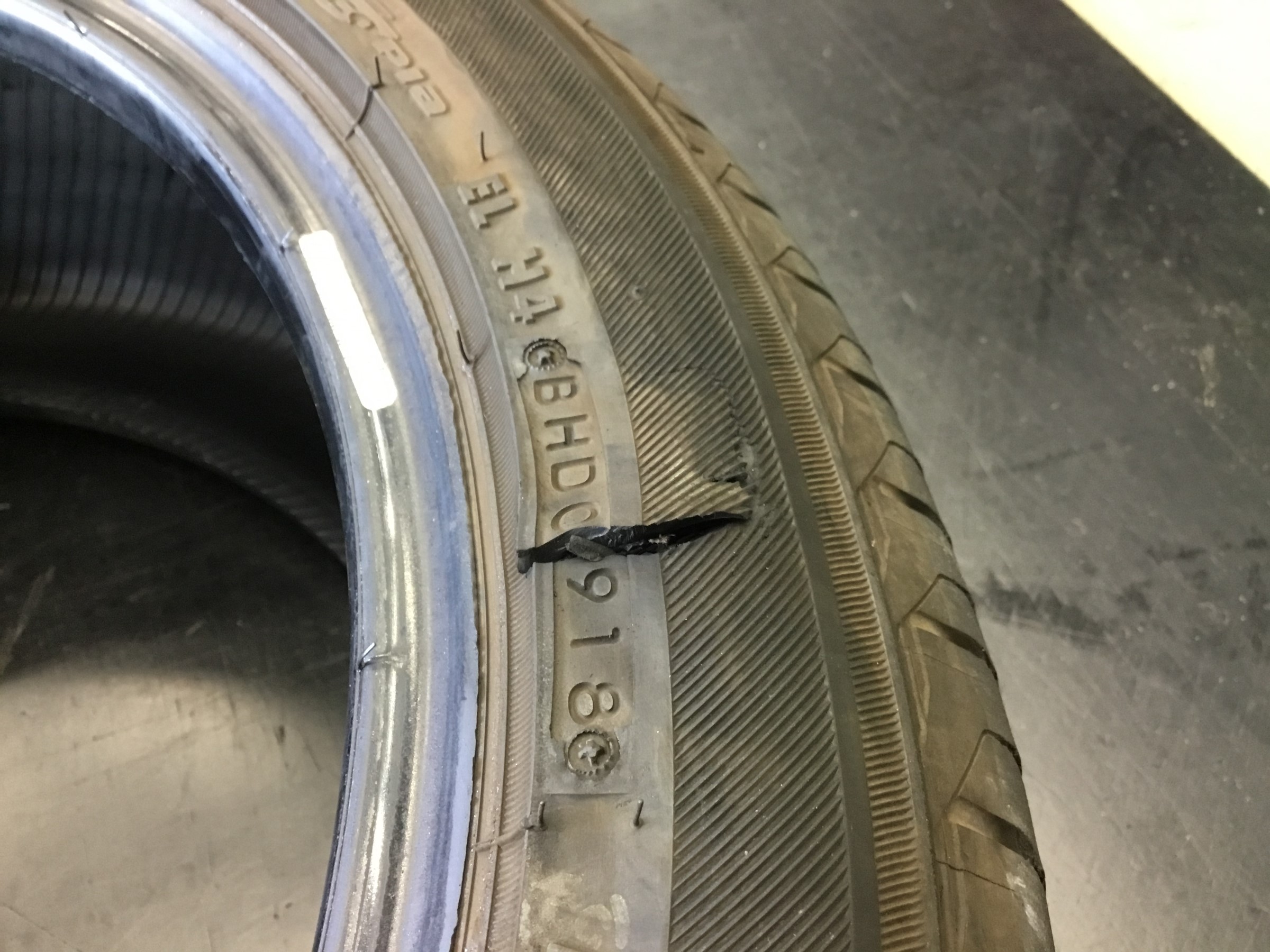原因はタイヤを縁石などに当ててしまった事によるサイドカットで、修理は不可能です。