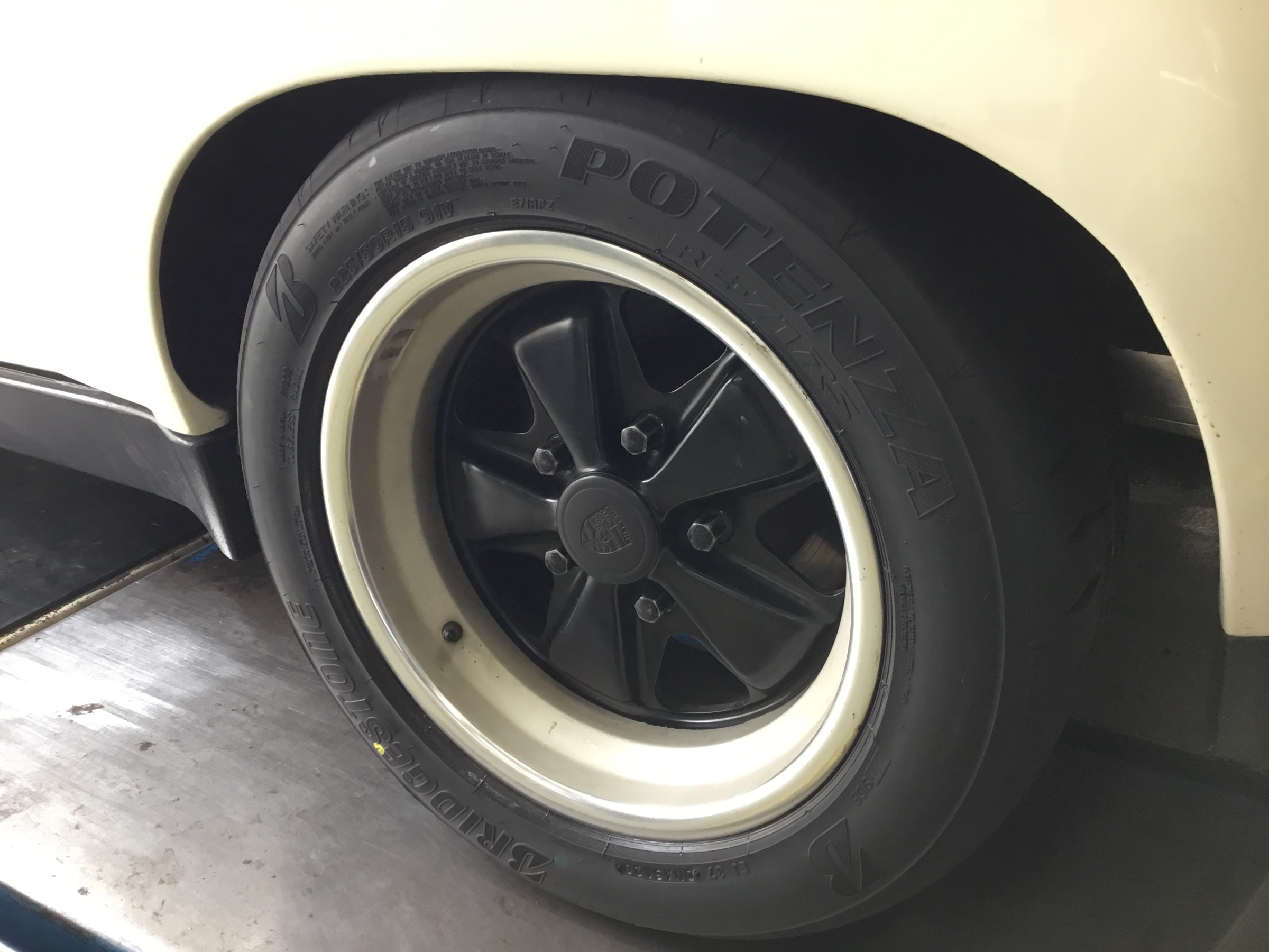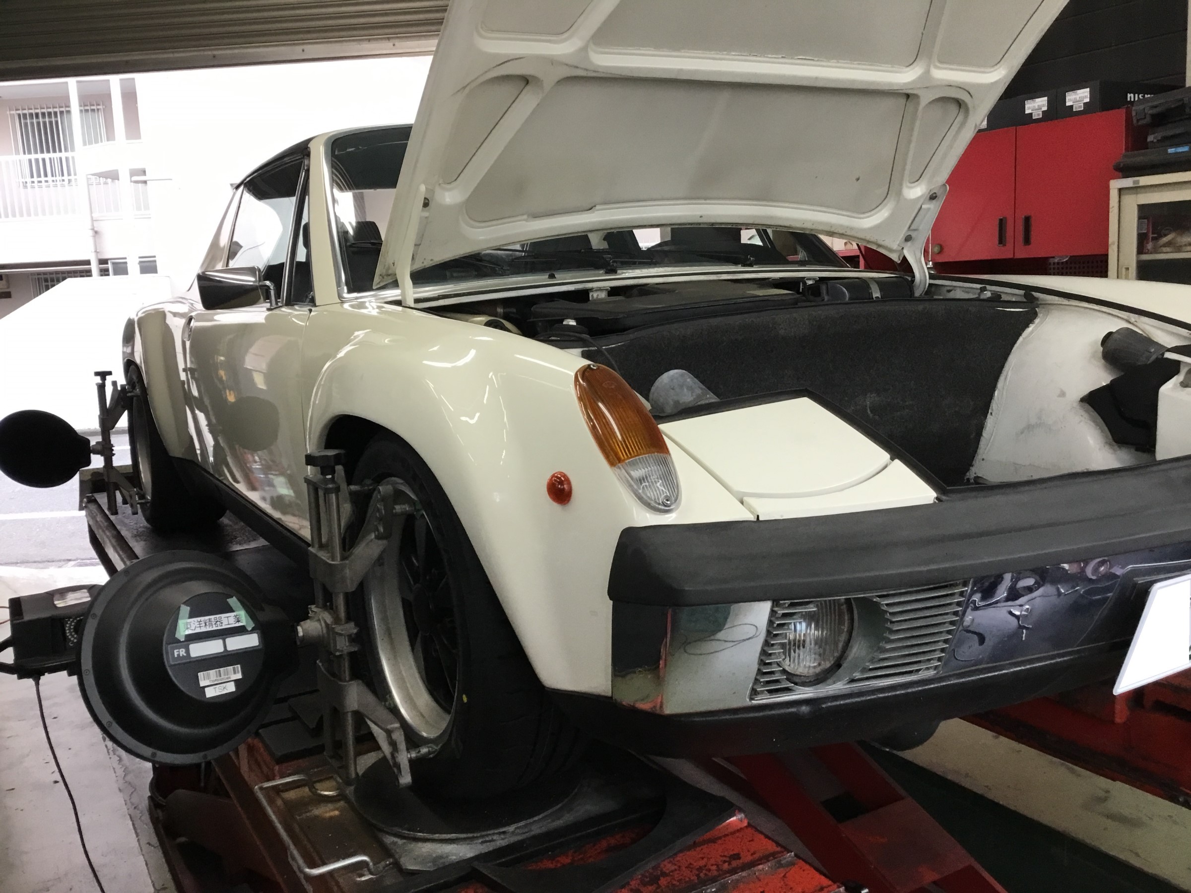 いつもオイル交換等でご利用いただいている業者様からのご依頼で、ポルシェ 914のタイヤ4本交換&アライメントです!