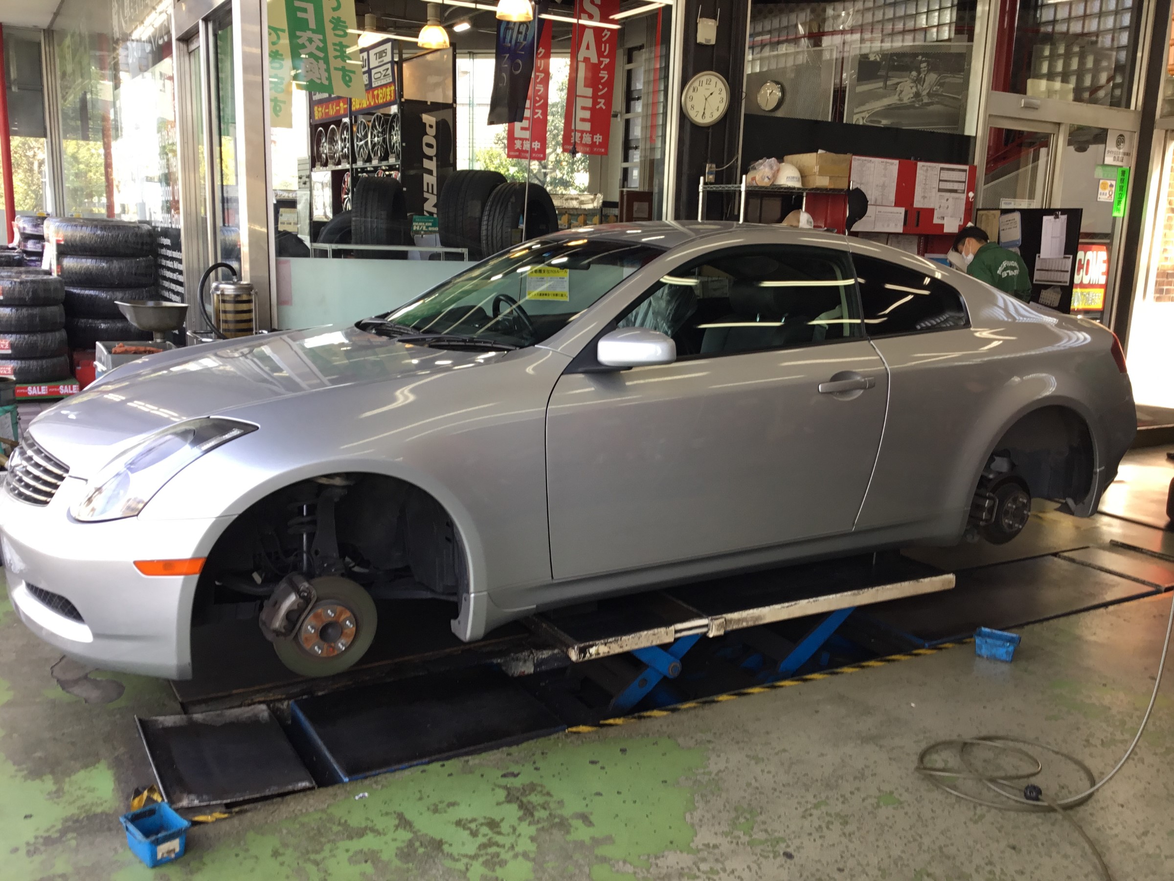 V35スカイラインクーペのタイヤ交換とアライメント調整です!!