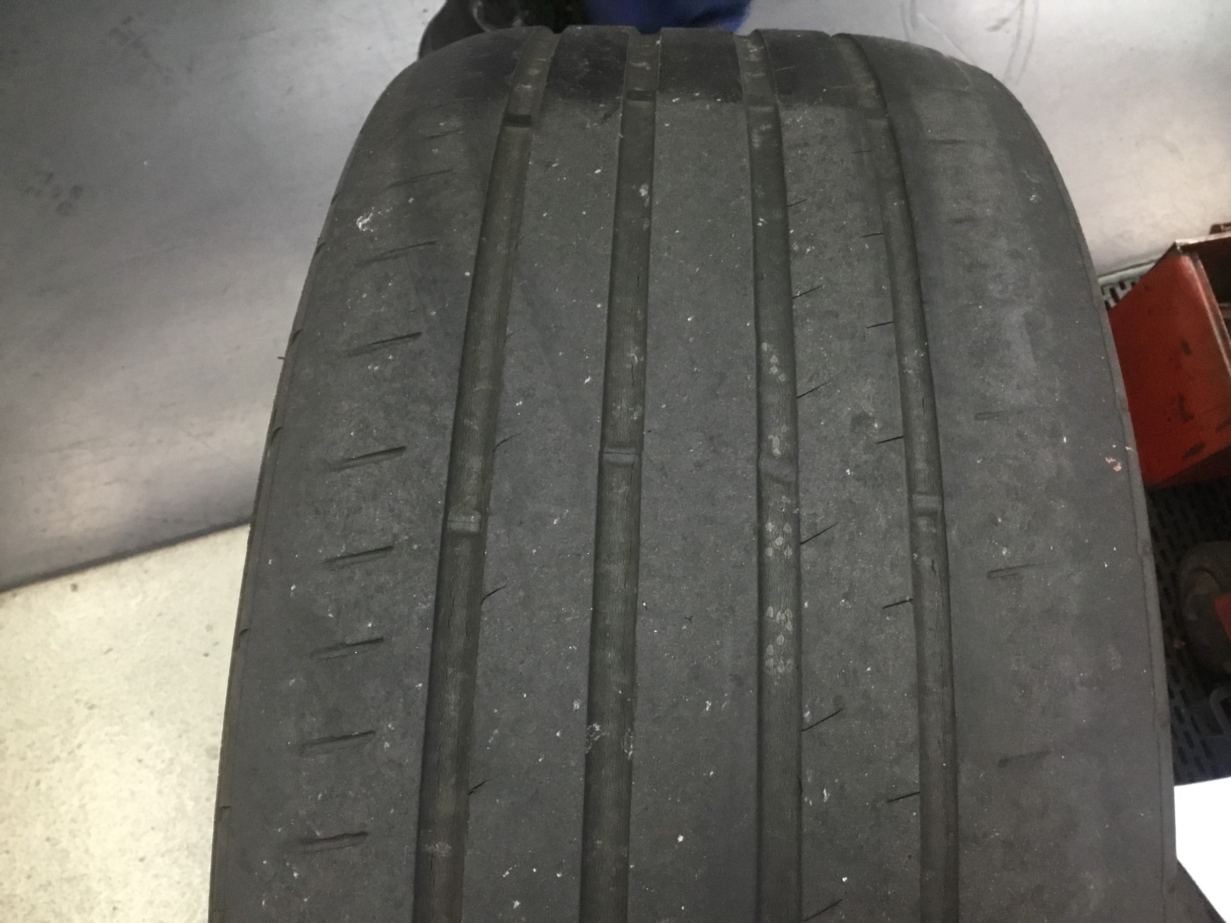 以前アライメント調整を行っていましたのでひどい片減りは見受けられませんが、若干の両肩減りです。