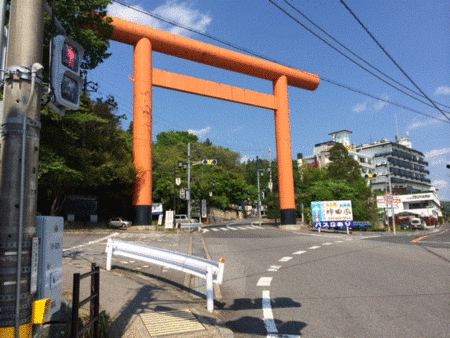画像1 登山口は神社の奥(ケーブルカー乗り場方面)にあります。登りは「御幸ヶ原コース」下り「白雲橋コース」を選択!