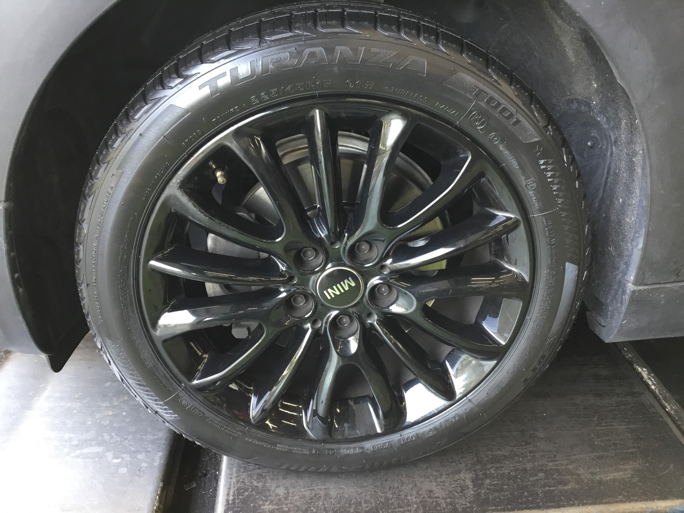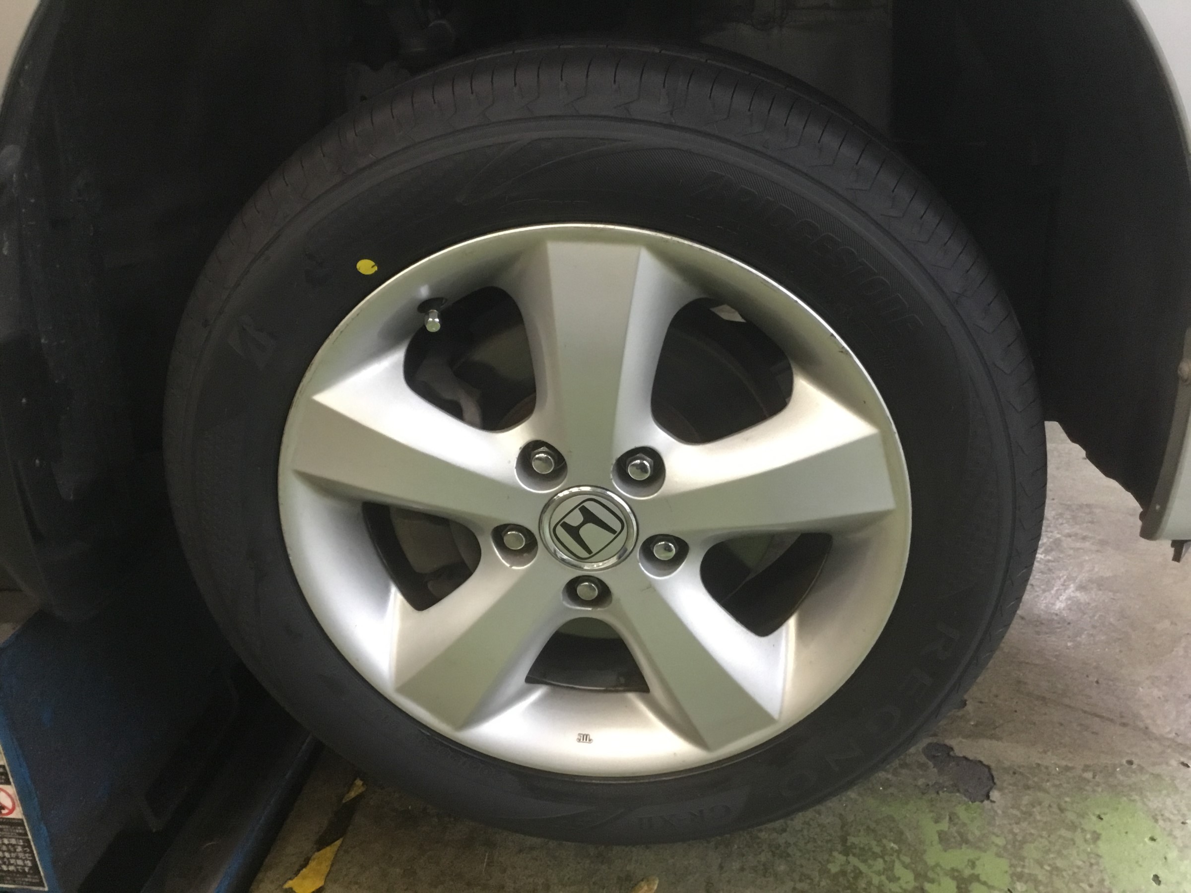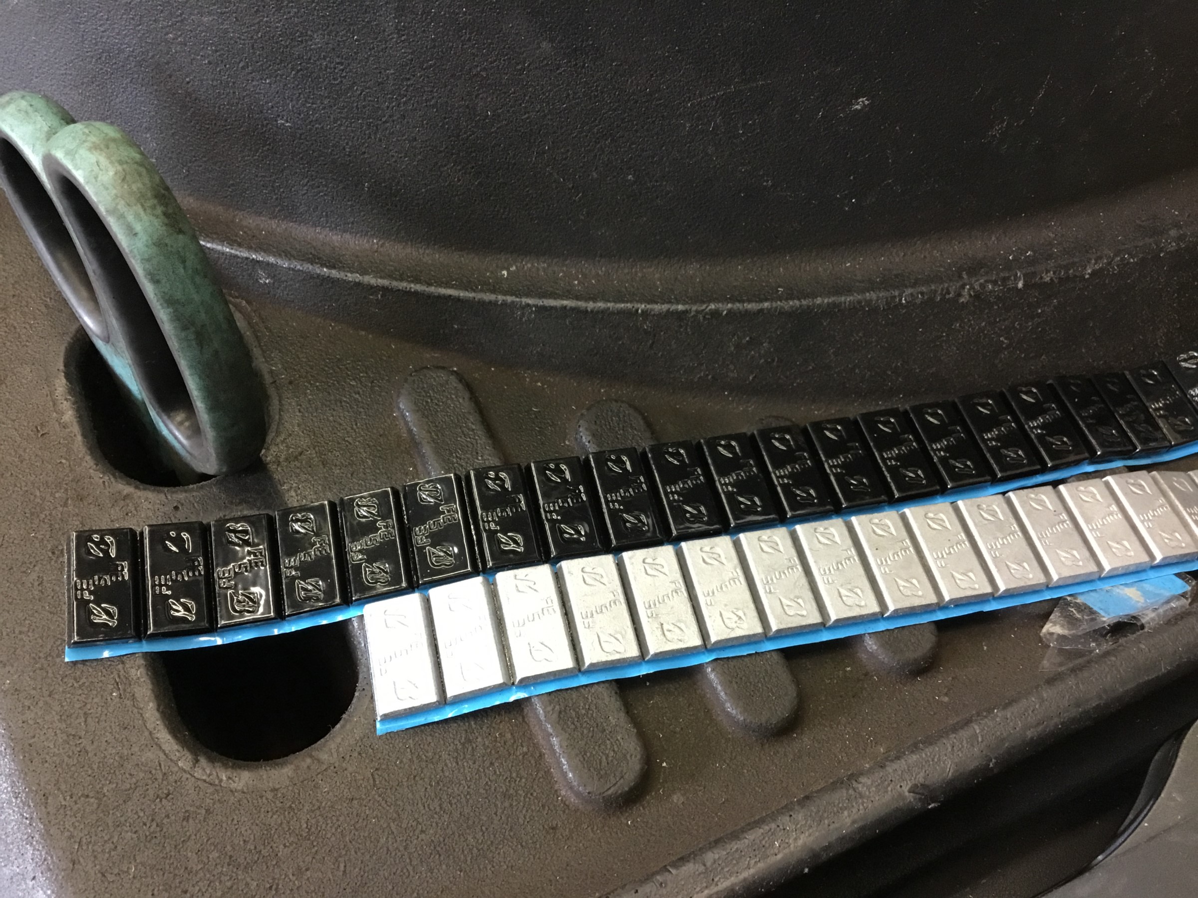 ホイールに張り付けるバランスウェイトは、通常のシルバーではなくオプションのブラックウェイトを使用♪