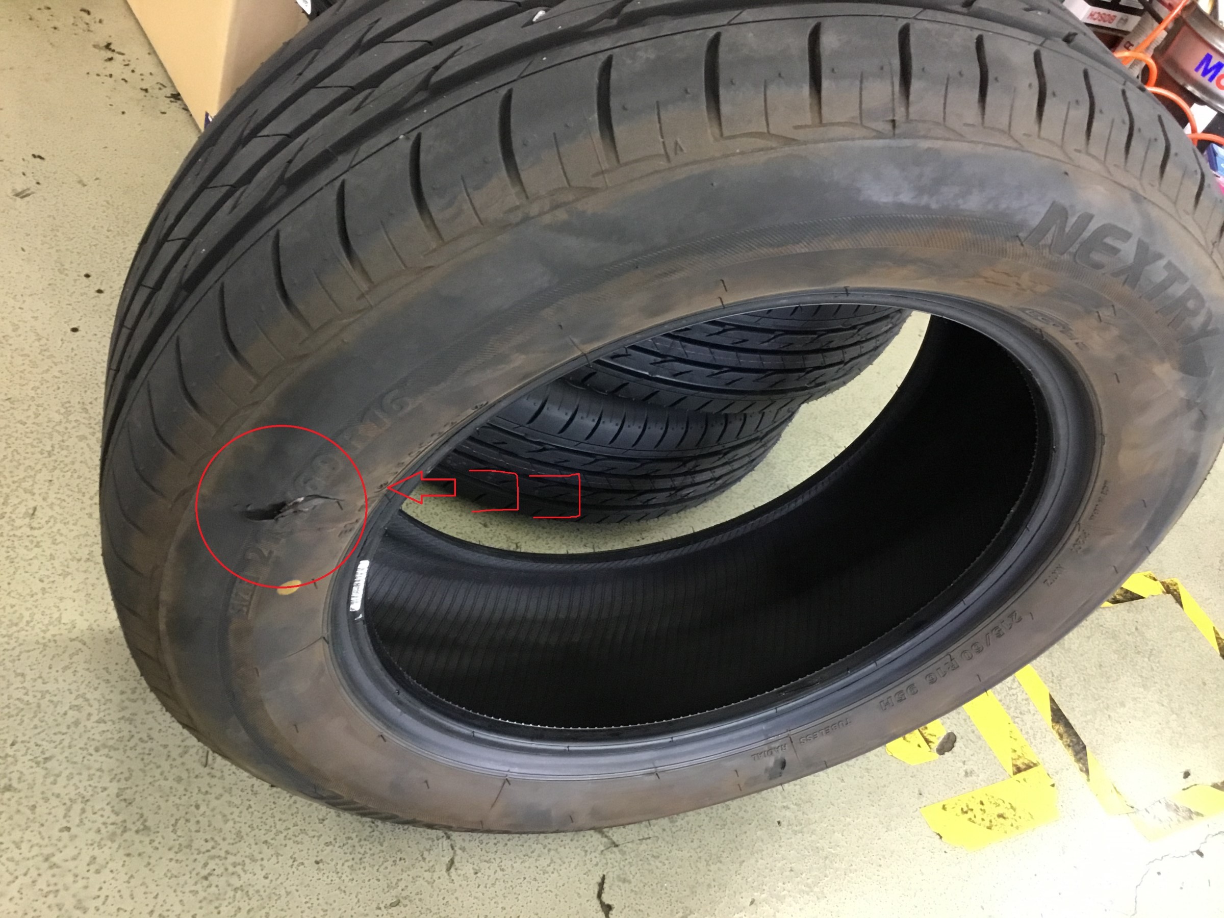 持ってきていただいたタイヤを見るとこの様にサイドがパックリ裂けてる…