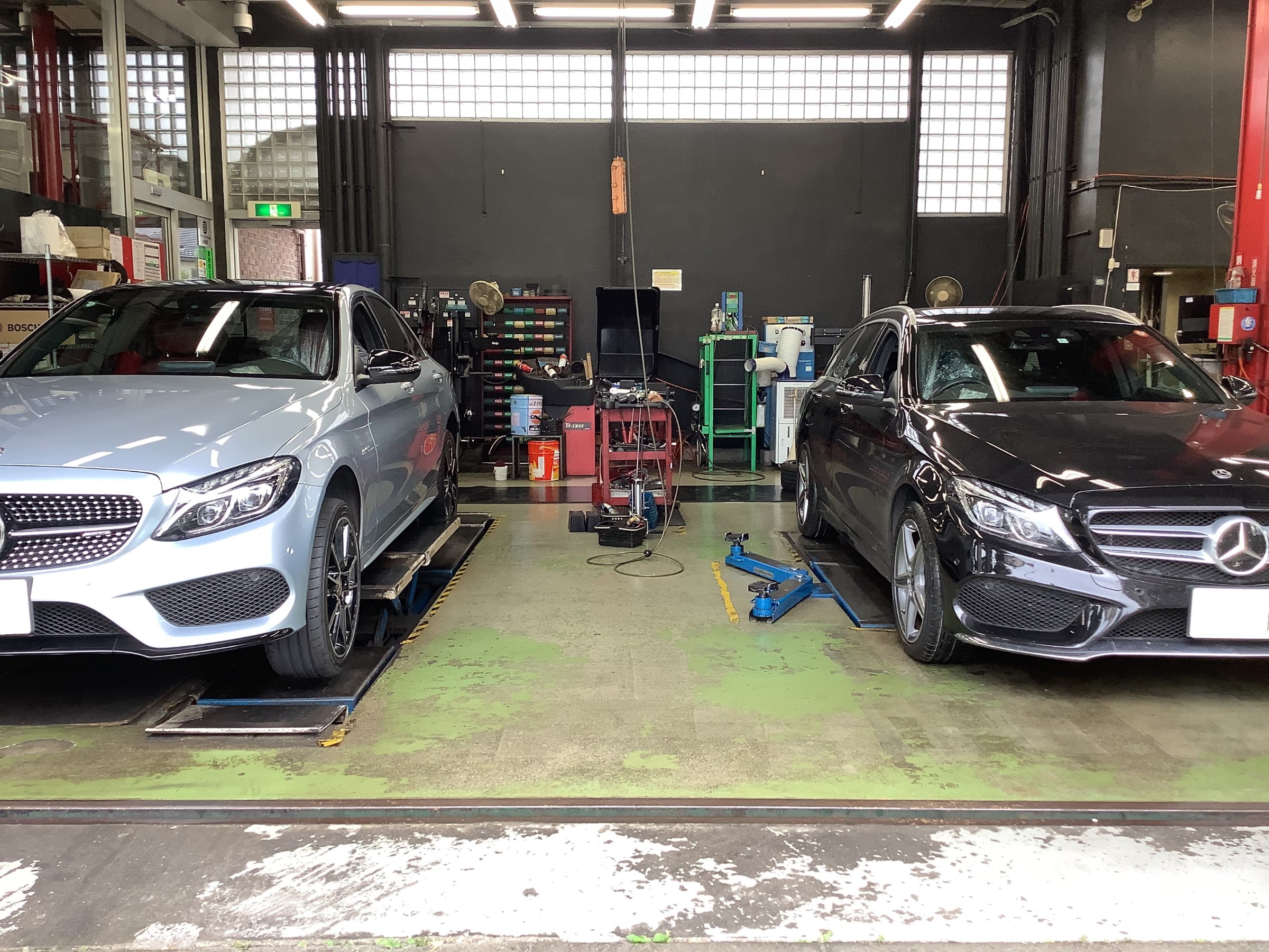 左はC43 AMG、右はC220dです。どちらもタイヤ交換をさせて頂きました!