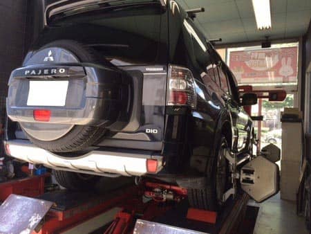 今日は先日作業させていただいたパジェロのタイヤ交換&アライメント調整を画像メインでご紹介いたします。