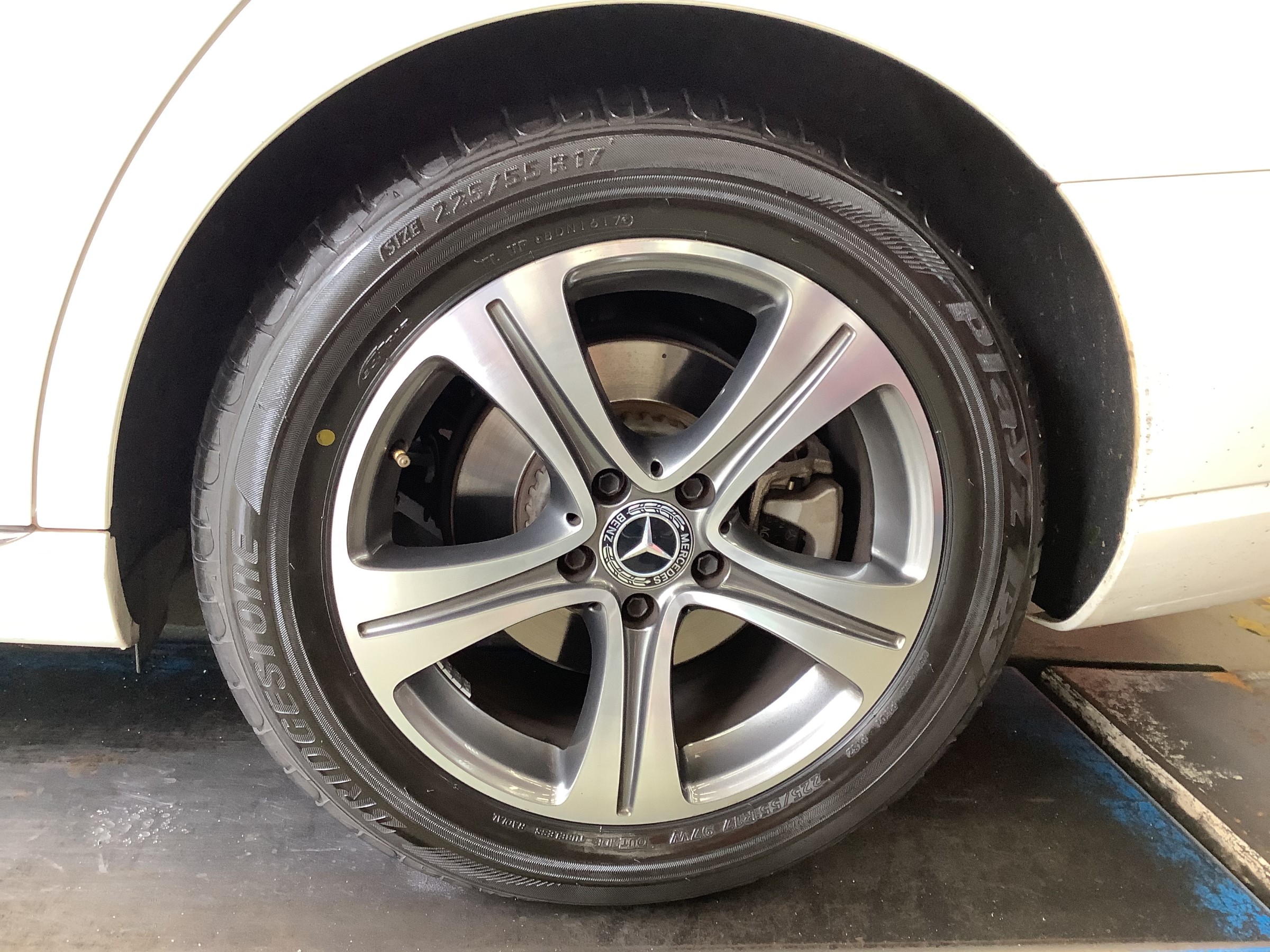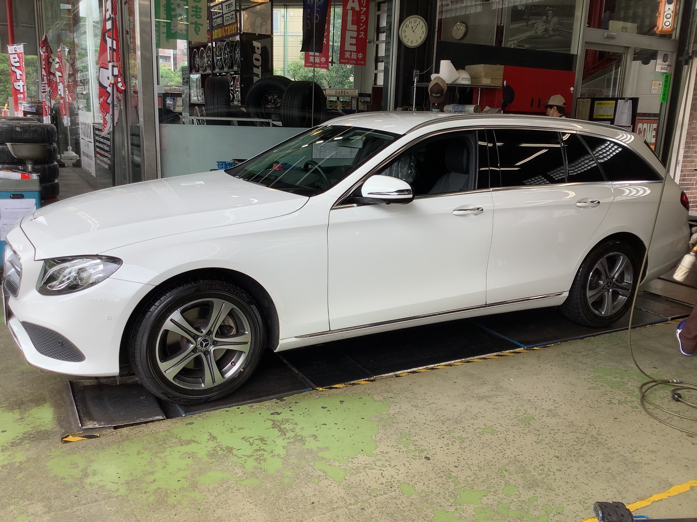 本日はメルセデスベンツS213がタイヤ交換のため来店です。