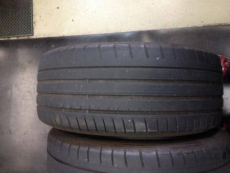 割とキレイに摩耗してるタイヤですが、実は現物を目視すると、内側の摩耗が強く表れています。